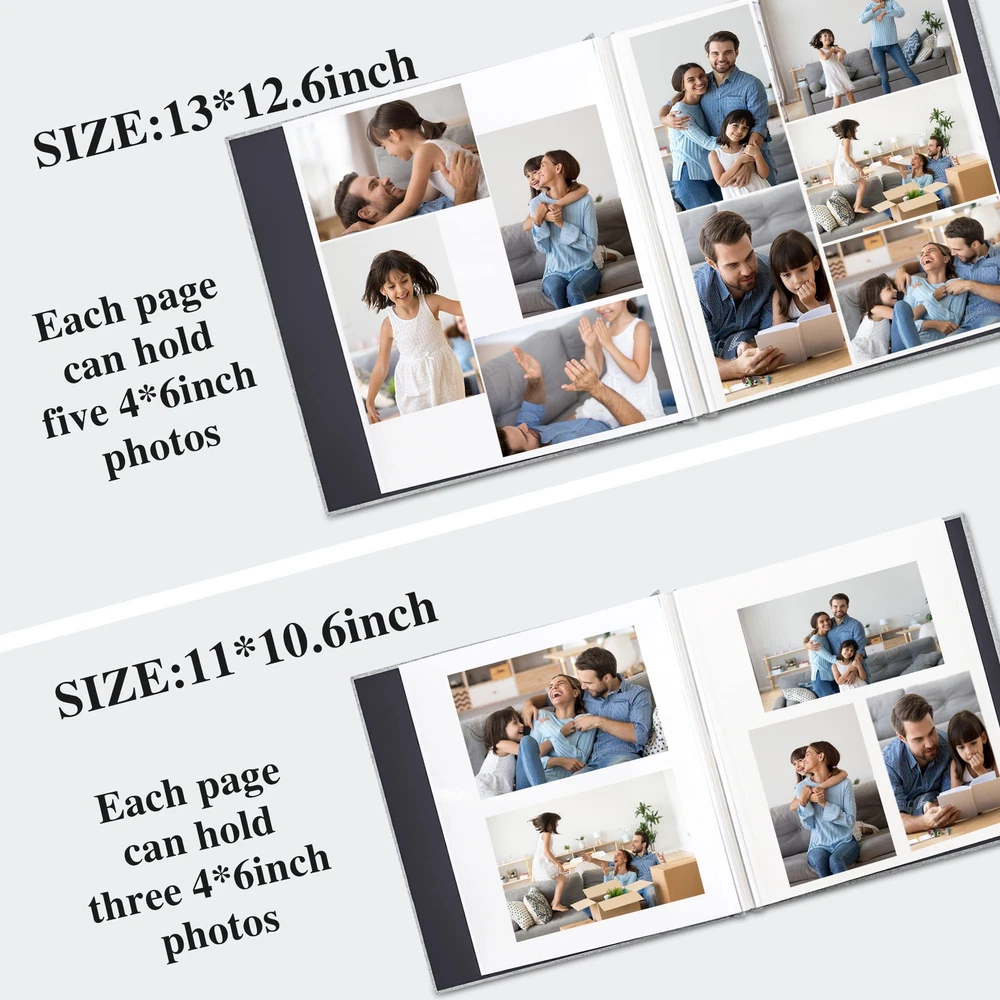 Size: The external size is length 11 x width 10.6(inches), internal self-adhesive page length 10.8 x width 8.6 (inches), 20sheets/40 pages, can hold 120 4x6 or 40 8x10 photos Acid free& PVC free: While protecting the photos from the oxidation of the air, the material of the album itself will not damage the photos, and your precious memories will be completely preserved for a long time Self-adhesive design: Suitable for any size photo, the page can be used repeatedly, free access to your precious photos. If you have additional needs, can also add inner pages by yourself, this book can add up to 10sheets/20 pages Linen cover: The page is wrapped in linen, highlighting the retro and exquisite style, wear-resistant, strong, delay the life of the album, protect your precious photos for a long time After-sale protection: We are confident that our photo album will make you satisfied. But if you receive a product with quality problems, or you have any questions about our products, please contact our after-sales customer service before choosing a return, we will provide you with more after-sales service options