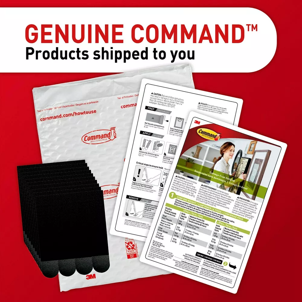 Black Large Picture Hanging Strips let you decorate how you want, when you want, without damaging surfaces. A great home improvement item, these picture hangers stick on a variety of smooth surfaces without leaving holes, marks or sticky residue. Use these wall hanging strips to hang picture frames, college dorm decor, wooden letters, nursery decor, calendars or to create a gallery wall. Simply mount these picture strips on painted walls, finished wood, painted concrete cinder blocks, laminate, glass, metal and tiles and enjoy the damage free hanging of your favorite decorations. Perfect for home renovators and college students, use these Picture Hanging Strips in your home, office, apartment or dorm room to elevate the appearance of your living or working space without tools. Directions are included; follow the directions closely to use the 3M Wall Hanging Strips as intended. A clever decorating solution that doesn’t damage surfaces, these wall hanger strips will help you fearlessly change your space. One package contains 20 pairs of large Black picture hanging strips. Four adhesive strip pairs hold up to 16 pounds with a maximum frame size of 24 x 36 inches. Decorate, organize and celebrate damage free with . MAXIMUM FRAME SIZE 24 X 36 INCHES: One package includes 20 pairs (40 strips total) of the Large Picture Hanging Strips; four wall adhesive strip pairs hold 16 pounds; maximum frame of 24 x 36 inches WORKS ON A VARIETY OF SMOOTH SURFACES: Wall hanging strips work on a variety of smooth surfaces, including painted walls, finished wood, painted concrete cinder blocks, laminate, glass, metal and tiles SURFACE PREP: Clean the desired surface with rubbing alcohol to remove grime and dust to allow the no damage wall hangers to bond to the surface; the indoor temperature must be between 50 degrees Fahrenheit and 105 degrees Fahrenheit USAGE TIPS: Wait seven days after painting before using the Picture Hangers to allow paint to cure; do not hang over beds or on wallpaper; do not use the wall hanging strips to hang valuable items EASY CLEAN REMOVAL: Lightly hold the top of the removable adhesive strips and slowly pull straight down towards the floor to remove and prevent damage of walls and surfaces DAMAGE FREE HANGING: Damage free hanging strips work without leaving holes, marks or sticky residue on a variety of surfaces and remove cleanly when you want to redecorate or reorganize your space without tools