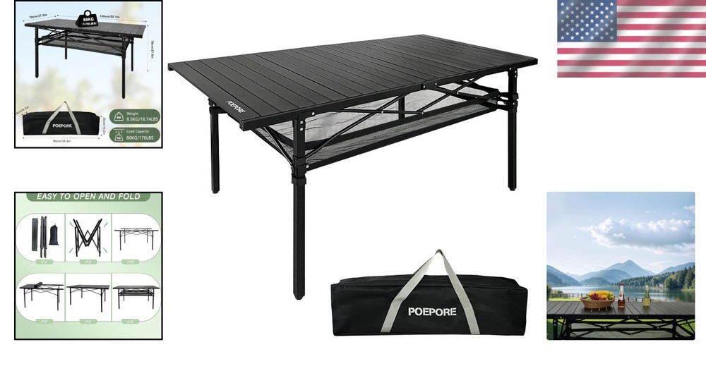 Large Aluminum Folding Camping Table 55x27.5 Outdoor Portable with Storage for 4-6 ‹ › ‹ › ‹ › ‹ › ‹ › ‹ › ‹ › ‹ › ‹ › ‹ › Large Aluminum Folding Camping Table Dimensions: 55.1 x 27.5 x 27.5 inches when unfolded; 35.4 x 10.2 x 6.3 inches when folded. Weight: 18.74 pounds Suitable for 4-6 people for family and friends gatherings. Features: aluminum tabletop for easy cleaning and portability. Sturdy steel pipe legs with an X frame design for enhanced stability. Can carry up to 176 pounds with ease. Extra mesh storage bag for organizing snacks, gadgets, and personal items. Fast folding design for effortless setup and takedown. Lightweight and portable, comes with an attached tote bag for hassle-free transport. Benefits: Perfectly accommodates 4-6 people for meals, games, and more. Robust materials that are designed to withstand outdoor conditions. Extra storage bag keeps your essentials organized and within . Quick assembly without tools saves you time and effort. Ideal for camping, traveling, beach trips, or indoor gatherings. Why Choose Our Large Aluminum Folding Camping Table? Transform your outdoor experiences with the Large Aluminum Folding Camping Table. With its generous size, this table is designed to create an inviting gathering space for family and friends, ensuring everyone has room to enjoy their meals together. Made from high-quality aluminum and reinforced with sturdy steel legs, it embodies strength and stability, easily supporting up to 176 pounds. The inclusion of a thoughtful mesh storage bag enhances the functionality, allowing you to keep all your items organized and within . Experience the effortless setup with an intuitive folding design that demands no tools, ensuring you can quickly enjoy your time outdoors. Pack it up seamlessly in its attached tote bag for stress-free transportation, making it the ultimate companion for any camping adventure, beach outing, or indoor event. Embark on your next adventure with the right gear—order your Large Aluminum Folding Camping Table today and relish the outdoor experience like never before! Shipping Free & Fast Shipping - We offer free shipping to most of the USA with a normal delivery time of 3-7 days. However, due to the current situation, additional delivery time (up to 3 weeks) may be required for some items. Alternative Carriers - We may use alternative carriers (e.g. USPS, FedEx, UPS, etc.) to ensure your package arrives safely and on time. Due to the use of multiple carriers, we are unable to provide a tracking number automatically. Handling Time - Orders are processed and shipped within 1-2 business days of receiving cleared payment. Shipping Restrictions - Shipping to Alaska, Hawaii, Puerto Rico, Guam, and other US territories may incur shipping charges or delivery restrictions. Please contact us before ordering, or your order can be refunded/cancelled. State Restrictions - There may be restrictions based on your state of purchase. For example, certain items may not be shipped to California due to state regulations. Contact for Tracking Updates - If you require tracking updates or have any concerns about the delivery of your order, please feel free to contact us, and we will be happy to assist you. Return 30-Day Hassle-Free Returns - We want you to be completely satisfied with your purchase. If you are not, you can return the item within 30 days of receiving it for a full refund or exchange. Easy Return Process - To start a return, simply contact us and we will provide you with a prepaid return shipping label and detailed instructions. Restocking Fee - There are no restocking fees for returns. However, the buyer is responsible for return shipping costs if the return is not due to a seller's error. Refund Processing Time - Refunds will be processed within 5 business days of receiving the returned item in its condition. Payment We accept all major credit cards, PayPal, and Apple Pay for your convenience. Your payment information is secure and encrypted to ensure a safe and seamless transaction. Please complete your payment within 3 days of purchase to avoid any delays in shipping. Feedback Your feedback is extremely important to us. We strive to provide the best products and customer service possible. If you are satisfied with your purchase, please take a moment to leave us a positive review. If you have any concerns or issues with your order, please contact us before leaving negative feedback. We are committed to resolving any problems and ensuring your satisfaction. Contact Us If you have any questions or concerns, please feel free to out to our customer support team. You can contact us through the eBay messaging system. We are available Monday to Friday, 9:00 am to 5:00 pm EST, and we will do our best to respond to your inquiry within 24 hours. Buy it now and enjoy a pleasant shopping experience! Folded Dimensions: 35.4"x10.2"x6.3" Item Height: 70 Centimeters Item Weight: 18.74 lb Unit Quantity: 18.74 Frame Material: Aluminum,Alloy Steel Tabletop Material: Aluminum Set Includes: Carry-Bag,Storage Bag,Table Suitable For: Backpacking,Camping,Hiking,Indoor,Indoor/Outdoor Features: Foldable,Heavy Duty,Lightweight,Portable,Waterproof,Weather Resistant Type: Camping Table Color: Black Weight Capacity: 176 lb Unit Type: lb