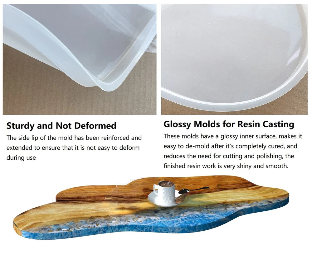 Large Resin Table Mold 24 inch Epoxy River Table Mold, Silicone Resin Tray Molds for River Table, Charcuterie Boards, Coffee Table, Desk Board, Cutting Board Large Resin Table Mold: you will get 1pcs table silicone mold, size 24*16 inches, depth 0.5in, it can be used to make various resin pouring projects such as coffee table serving tray cheese platter cutting board river table etc Sturdy and Not Deformed: The side lip of the mold has been reinforced and extended to ensure that it is not easy to deform during use Sturdy Silicone Material: the molds made of durable silicone material, superior high tear strength, easy to use and clean, compatible with epoxy resin, casting resin. Glossy Molds for Resin Casting: These molds have a glossy inner surface, the smooth interior makes it easy to de-mold after it’s completely cured, and reduces the need for cutting and polishing, the finished resin work is very shiny and smooth. Tips: if the mold causes deformation during transportation, you can add water to the mold and leave it for a few days, Silicone molds are cleaned with soapy or warm water before and after use, and mold demould agent are used, which can extend the service life Large Resin Table Mold: you will get 1pcs table silicone mold, size 24*16 inches, depth 0.5in, it can be used to make various resin pouring projects such as coffee table serving tray cheese platter cutting board river table etc Shipping We offer FREE shipping on all orders! We ship within Three business days of payment, usually sooner. We use a selection of shipping services such as UPS, FedEx, USPS etc. We only ship to the lower 48 states, no APO/FPO addresses or PO Boxes allowed. Local pickups and combined shipping options are not provided at this time. Return You can return a product for up to 30 days from the date you purchased it. Any product you return must be in the same condition you received it and in the original packaging. Please keep the receipt. Payment We accept payment by any of the following methods: PayPal Please pay as soon as possible after winning an auction, as that will allow us to post your item to you sooner! Feedback Customer satisfaction is very important to us. If you have any problem with your order, please contact us and we will do our best to make you satisfied. Contact Us If you have any queries, please contact us via ebay. We usually respond within 24 hours on weekdays. Please visit our eBay store to check out other items for sale! Thank you for shopping at our store.