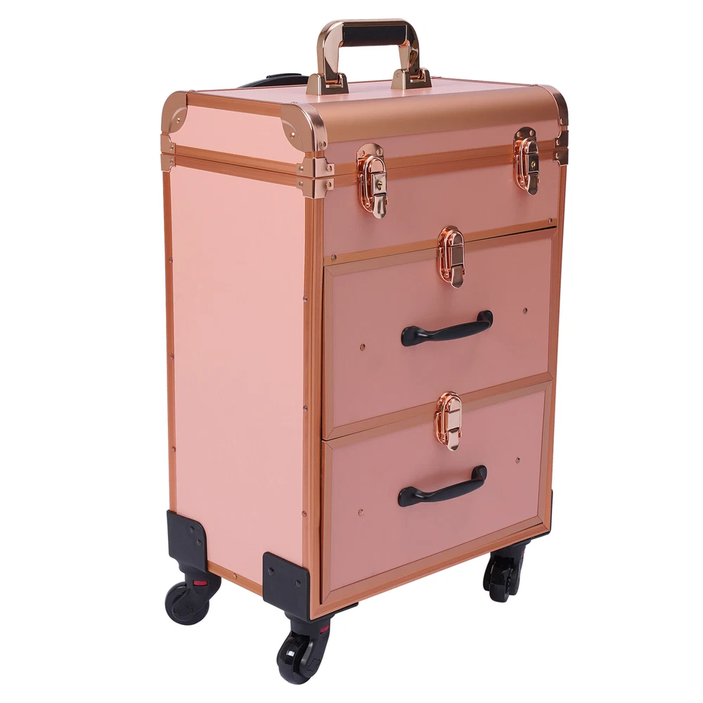 Application This rolling make-up case is suitable for professional make-up artists, hairdressers, nail technicians, and beauticians in beauty centers, salons, private homes, parties, and other occasions. Specification Number of Layers: 3 Color: Gold Material: Aluminum Alloy Frame and Plastic Fireproof Board Panel Shape: Rectangular Processing Method: Frosted Rolling Wheel Style: Universal Wheel Carrying Parts: Retractable Handle Gross Weight: 9kg/ 19.8lbs Net Weight: 7.5kg/16.5lbs Package Size: 57*42*32cm/22.4*16.5*12.6inch Product Size: 36*23*58cm/14.2*9.1*22.8in Maximum Load: 50kg/110.3lbs Package Included 1 x Makeup Case 4 x Universal Wheels 2 x Keys Notes Please allow the slight color difference caused by the shooting light and 1-3cm error due to manual measurement Large Rolling Makeup Case Trolley Makeup Organizer Cosmetic Storage Case Wheels Welcome(●'◡'●) Description This is a movable multi-layered makeup case designed for professional beauty artists to make up anytime and anywhere. This rolling makeup case is constructed of high-quality aluminum alloy that is sturdy and durable. It has extra large capacity compartments and multi-layer drawers. This case is ideal for all people who love beauty or nail art. Key Features High-quality Materials: The frame of the makeup case is wrapped with high-quality aluminum alloy, which will not easily rust and fade. And the thicker, all-aluminum drawbar makes the case more stable, refusing to shake. Large Capacity: This makeup case has 3 layers, the top layer can store nail polish or lipstick; the bottom two drawers can store full-size cosmetics and beauty appliances, such as perms, manicure machines and light therapy supplies. This multifunctional product can meet your storage needs. Excellent Weight-bearing Capacity: The rectangular construction and aluminum alloy frame give the case a superb load-bearing capacity (up to 110.3 lbs). You can safely put all your hair and beauty tools on it. Sorted Storage: Beauty products with different functions and sizes are stored in the corresponding drawer and compartment, making the tools ranged orderly, so it is convenient for you to quickly find the tools you want. Easy to Move and Carry: The universal wheels are easy to move and very convenient, especially for nail salons and beauty salons that have a lot of tools and need to move frequently. And it comes with a telescopic pull bar ( maximum length is 32.7inchs ) and a top handle, which is easy to carry on trips and business trips. Stylish Appearance: This rolling make-up case gives a stylish and exquisite look with its simple construc tion and stylish gold . Such a retro make-up case will decorate your dressing room well and make a good impression when you are working outside. Secure & Reliable: The metal locks of the case protect the contents securely and the lockable design ensures security and privacy. Worry-free Service: We have been working hard to provide better service and quality for our customers, which is our goal. If there is any quality problem with our products. Please contact us in time. Details Transparent Storage Bag: The transparent storage bag on the inside of the lid allows for wet and dry storage, for example, you can store wet beauty eggs and powder puffs to avoid cross-contamination. Rounded Edges: The top of the cosmetic case has been designed with rounded corners rather than sharp edges to avoid scuffing. Reinforced Lock: Reinforced lock not only makes it convenient for you to open and close, but also does not affect the appearance, and solves the embarrassment of bursting when going out. Application This rolling make-up case is suitable for professional make-up artists, hairdressers, nail technicians, and beauticians in beauty centers, salons, private homes, parties, and other occasions. Specification Number of Layers: 3 Color: Gold Material: Aluminum Alloy Frame and Plastic Fireproof Board Panel Shape: Rectangular Processing Method: Frosted Rolling Wheel Style: Universal Wheel Carrying Parts: Retractable Handle Gross Weight: 9kg/ 19.8lbs Net Weight: 7.5kg/16.5lbs Package Size: 57*42*32cm/22.4*16.5*12.6inch Product Size: 36*23*58cm/14.2*9.1*22.8in Maximum Load: 50kg/110.3lbs Package Included 1 x Makeup Case 4 x Universal Wheels 2 x Keys Notes Please allow the slight color difference caused by the shooting light and 1-3cm error due to manual measurement, and make sure you do not mind before you order. DESCRIPTION: ??Beyond your expectations, let's work together to create a perfect shopping experience. SELLER HELP Payment Delivery details Terms of sales About us Contact us Payment We accept ebay payment 。 Fees such as import duties, taxes are not included in the item price or shipping costs. These charges are the buyer's responsibility. Delivery details Shipping: 2-9 working days to: USA Terms of sales We maintain high standards of excellence and strive for hundred percent customer satisfaction. Feedback is very important to us. We hope that you contact us immediately before you give neutral or negative feedback, so that we can address your concerns. It is impossible to address issues if we do not know about them! About us Your satis faction is our ultimate goal. We work hard to earn your trust and future business. Our certified technicians have tested each item before shipping. The unit comes with 1 year limited warranty on all manufacturing defects. a) If you receive a defective item, you may return it or ask for a discount. Please contact us within 14 days after you receive the package. b) What you returned must be intact and in its original packaging as re? u. Customer is responsible for shipping costs of the returned item. c) We will cover the cost of shipping back t with the shipping rate indicated in the registration page. We will send you a new unit or refund the full payment you paid. Thank you. Contact us Business Hour Business Hour: Monday To Friday: 8:30 AM to 5:00 PM (Beijing China time) Due to time zones, ou