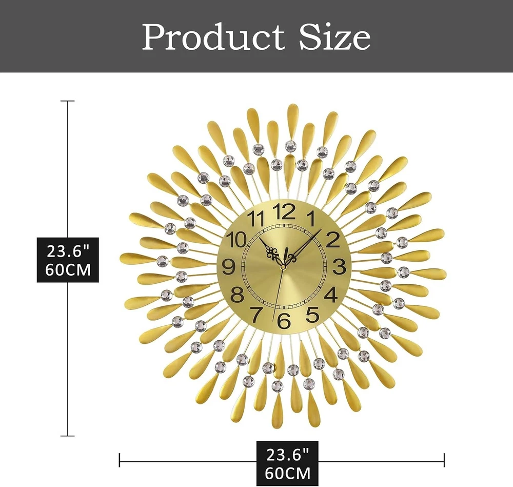 Large Silent Metal Wall Clock (23.6”): Modern Art for Living Room Elegance ‹ › ‹ › ‹ › ‹ › ‹ › ‹ › ‹ › ‹ › ‹ › ‹ › Large Silent Metal Wall Clock - 23.6” Modern Art for Living Room Elegance MODERN DESIGN: Handmade metal round shape, exuding elegance and sophistication. Crafted from durable metal with a high-temperature lacquer finish for added shine. Aluminum needle and clock surface ensure durability and a unique aesthetic. Clear, firm surface that resists deformation and fading, easy to operate and read. SILENT MOVEMENT: Experience tranquility with our silent clock movement—perfect for work and sleep environments. High-quality movement guarantees smooth operation of clock hands, providing accurate timekeeping. CLOCK SIZE: Impressive dimensions: 23.6 x 23.6 inches (60 x 60 cm). Please allow a slight variation of ±1-2 cm (±0.4-0.8 inch). Ensure the space is suitable before purchase for an ideal fit. BEST GIFTS: The ultimate statement piece for any living room, office, study, or bedroom. Perfect gift for special occasions: Mother's Day, Valentine's Day, and Christmas. A beautiful reminder of happy moments spent with loved ones. NOTICE: Operated by 1 AA carbon battery (not included). Avoid alkaline batteries to ensure longevity and time accuracy. Handle gently; avoid touching the hook to prevent damage. Why Choose Us? Over 10 years of experience in wall clock production, emphasizing quality and craftsmanship. Our unique designs add a touch of warmth and taste to your home décor. Diverse color and style options to suit your personal aesthetic. Elevate your space with our Large Silent Metal Wall Clock—a perfect blend of functionality and artistry! Shipping Free & Fast Shipping - We offer free shipping to most of the USA with a normal delivery time of 3-7 days. However, due to the current situation, additional delivery time (up to 3 weeks) may be required for some items. Alternative Carriers - We may use alternative carriers (e.g. USPS, FedEx, UPS, etc.) to ensure your package arrives safely and on time. Due to the use of multiple carriers, we are unable to provide a tracking number automatically. Handling Time - Orders are processed and shipped within 1-2 business days of receiving cleared payment. Shipping Restrictions - Shipping to Alaska, Hawaii, Puerto Rico, Guam, and other US territories may incur shipping charges or delivery restrictions. Please contact us before ordering, or your order can be refunded/cancelled. State Restrictions - There may be restrictions based on your state of purchase. For example, certain items may not be shipped to California due to state regulations. Contact for Tracking Updates - If you require tracking updates or have any concerns about the delivery of your order, please feel free to contact us, and we will be happy to assist you. Return 30-Day Hassle-Free Returns - We want you to be completely satisfied with your purchase. If you are not, you can return the item within 30 days of receiving it for a full refund or exchange. Easy Return Process - To start a return, simply contact us and we will provide you with a prepaid return shipping label and detailed instructions. Restocking Fee - There are no restocking fees for returns. However, the buyer is responsible for return shipping costs if the return is not due to a seller's error. Refund Processing Time - Refunds will be processed within 5 business days of receiving the returned item in its original condition. Payment We accept all major credit cards, PayPal, and Apple Pay for your convenience. Your payment information is secure and encrypted to ensure a safe and seamless transaction. Please complete your payment within 3 days of purchase to avoid any delays in shipping. Feedback Your feedback is extremely important to us. We strive to provide the best products and customer service possible. If you are satisfied with your purchase, please take a moment to leave us a positive review. If you have any concerns or issues with your order, please contact us before leaving negative feedback. We are committed to resolving any problems and ensuring your satisfaction. Contact Us If you have any questions or concerns, please feel free to reach out to our customer support team. You can contact us through the eBay messaging system. We are available Monday to Friday, 9:00 am to 5:00 pm EST, and we will do our best to respond to your inquiry within 24 hours. Buy it now and enjoy a pleasant shopping experience! UPC: Not Set Item Length: Not Set Product Line: Not Set Unit Quantity: 23.6 Material: Metal,Aluminum,Iron Department: Adults Smart Home Protocol: Not Set Smart Home Compatibility: Not Set Character: Not Set Features: Silent/No Ticking,Easy to Read Room: Bedroom,Dining Room,Living Room,Home Office,Classroom,Kid's Room Theme: Art Brand: Unbranded Type: Standard Wall Clock Chime Sequence: Not Set Era: Not Set Color: Gold Display Type: Analog MPN: Not Set Model: Not Set Movement: Quartz (Battery Powered) Power Source: Battery Powered Number Type: Arabic Numerals Protection Plan: No Coverage Manufacturer Warranty: Not Set Character Family: Not Set Country/Region of Manufacture: Not Set Finish: Gold Frame Material: Metal Item Height: Not Set Item Weight: 4 lb Item Width: Not Set Shape: Round Style: Modern Year Manufactured: Not Set Unit Type: Unit Personalize: Not Set Original/Reproduction: Not Set Engraved: Not Set