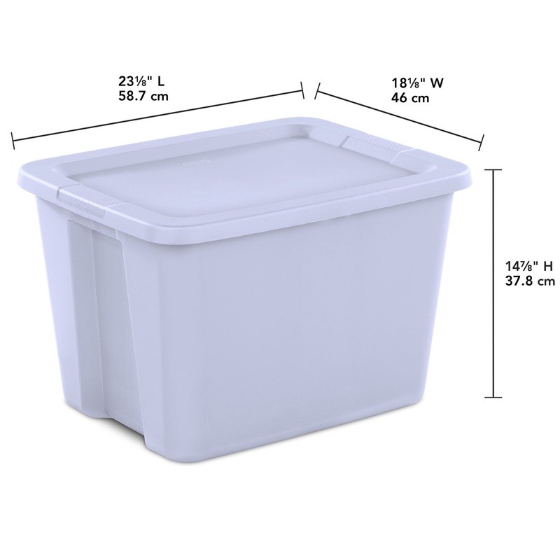 You may also like Clear Plastic Storage Bin 18Qt Stackable Container W/ HI-Rise Lid 8 Pack New 67.59 USD 71.15 USD Free shipping 5% off 30 Compartment Wall Mount Storage Organizer Bins Home Garage Office Crafts New 28.68 USD 30.19 USD Free shipping 5% off Airtight Plastic Storage Bins W/ Lids Stackable Heavy Duty Clear Containers New 38.05 USD 40.05 USD Free shipping 5% off Large Stackable Plastic Storage Bin Tools Accessories Organization Garage Use 17.8 USD 18.74 USD Free shipping 5% off 17 Gallon Plastic Storage Bin Stackable Lid Lockable Tote Organizer Container US 19.71 USD 20.75 USD Free shipping 5% off 20 Qt Clear Plastic Storage Bins W/ Gasket Lid 6 Pack Stackable Organizers New 45.31 USD 47.69 USD Free shipping 5% off Airtight Clear Plastic Storage Bins W/ Lids 5Pk Stackable Organizing Containers 28.84 USD 30.36 USD Free shipping 5% off Stackable Storage Bins W/ Lids Durable Plastic Containers Home Organization New 24.74 USD 26.04 USD Free shipping 5% off Large Clip Box Clear Plastic Storage Bin W/ Latching Lid Stackable Organizer New 10.58 USD 11.14 USD Free shipping 5% off 2 Pack Clear Plastic Desktop Drawer Organizer 3 Drawer Stackable Storage Unit US 25.87 USD 27.23 USD Free shipping 5% off Stackable Plastic Drawer Storage Organizer Modular Living Room Office Garage New 20.48 USD 21.56 USD Free shipping 5% off Durable Lockable Storage Box Hunting Gear Camping Supplies Outdoor Equipment New 23.3 USD 24.53 USD Free shipping 5% off Stay organized with ’s 18 Gallon Storage Bin. The square, space-efficient shape features a deep recessed lid which allows bins to stack securely, maximizing vertical storage space. The broad rim adds strength and the textured integrated handles make for easier carrying and lifting. Contain and conceal clutter throughout your home to create a neat and tidy living space! This popular size is ideal for sorting and storing off-season gear, decor, games, and more. Note: Use good judgment when storing items, don’t overload, keep heaviest bin at bottom, and don’t stack too high. Outside Dimensions: 23 1/8" x 18 1/8" x 14 7/8" Interior Dimensions at bottom: 16 3/4" x 13 3/4" x 14 3/8" Integrated handles with textured surface provides a sure grip Deep recessed snap-on lid allows for secure stacking Ideal for basic storage needs in the garage, basement, and attic Use good judgment when stacking items, keep heaviest bin at the bottom BPA-free and phthalate-free You may also like Ceramic Speckled Ribbed Vase Decorative Pot Indoor Plants Home Decor 4.5 Inch US 10.19 USD 10.73 USD Free shipping 5% off Ceramic Dinner Plate Rustic Stoneware Dishwasher Safe Round Elegant Tableware US 8.74 USD 9.2 USD Free shipping 5% off Extra Large Refreshing Mint Flushable Wipes 144 Count Hypoallergenic Moist Wipes 16.61 USD 17.48 USD Free shipping 5% off Enamel Percolator Coffee Pot 8 Cup Easy Pour Camping Coffee Maker Cookware New 27.34 USD 28.78 USD Free shipping 5% off Bathroom Air Freshener Odor Fighter Small Spaces Linen Sky Scent 2 Pack 45 Days 8.01 USD 8.43 USD Free shipping 5% off White Paper Napkins 400 Count Disposable Family Meals Messes Spills Celebrations 9.93 USD 10.45 USD Free shipping 5% off Flexible Laundry Hamper 2 Bushel Square Ventilated Lightweight Storage Bin New 15.82 USD 16.65 USD Free shipping 5% off 15X6.00-6 Lawn Garden Tire S-365 N743 Golf Cart All-Season Heavy Duty 4 Ply New 28.51 USD 30.01 USD Free shipping 5% off Silent Sweep Wall Clock 10 Inch Dome Glass Lens Analog Quartz Modern Design New 22.01 USD 23.17 USD Free shipping 5% off Yellowstone Tablecloth 84 inch 2 Pack Cotton Machine Washable Dining Essential 34.3 USD 36.1 USD Free shipping 5% off 14 Cup Glass Storage Container Tritan Lid Microwave Freezer Safe Stackable 2pc 21.38 USD 22.51 USD Free shipping 5% off Ultra Strong 33gal Trash Bags Odor Control Puncture Resistant Drawstring 40ct US 22.64 USD 23.83 USD Free shipping 5% off
