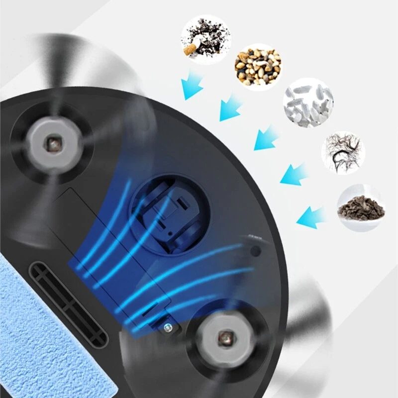 Large Suction Robot Vacuum and Anti-collision Rechargeable Vacuum Features: and high Large area: This sweeping robot can a large area of 100-150 square meters. Automatic obstacle recognition system: with intelligent anti-collision and anti-drop function. Combine sweeping, vacuuming and mopping into up suck away and drag to make the floor Easy to for cross furniture, bed bottom, and more comfortable. Applicable floors: marble, ceramic tiles, wooden floors, carpets and other flat floors. Specifications: ABS+Electronic Components Weight: 450g Size: 21x21x5cm/8.26x8.26x1.97inch Color: Black/White Rated Power: 5W Charging Time: About 3.5 hours Use Time: About 75 minutes Capacity: 800mAh Package Includes: 1x Robot 1x Rag 1x Velcro-tape 1x USB Charging Cable 2x Extended Brushes 1x Brush 1x Instruction Manual note: 1.Please allow 1-2cm errors due to manual measurement, make sure that you do not mind before you order. 2.Due to the difference between different monitors, the picture may not reflect the actual color of the item.