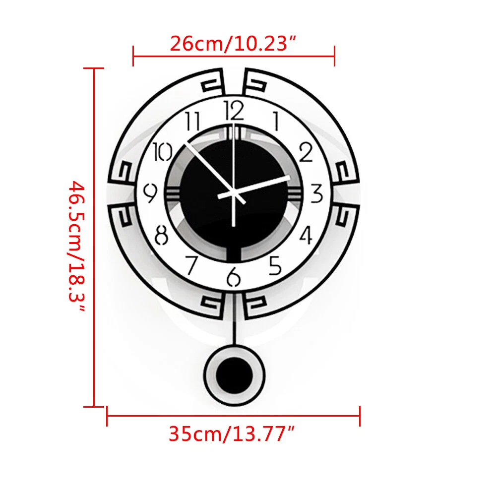 Large Swing Wall Clock Modern Nordic Living Room Silent Pendulum Wall Clock Description This acrylic wall-mounted clock with silent sweep seconds movement is a high-quality home decor item. Its acrylic body makes it highly clear, lightweight, and easy to clean. The silent sweep quartz movement makes the clock run smoothly without making noise. The time scale on it is designed with large fonts so that you can see the time clearly from different angles. It is not only a practical clock, but also a beautiful decoration, which is suitable for various decorative styles of home use. Details Battery Powered: It is powered by two AA batteries (not included), which is easy to buy and can last for a long time. Time Adjustment Gear: You can easily and accurately adjust the time by turning the gear at the back of the clock. Application It is suitable for use as a wall clock and wall decoration in bedrooms, dining rooms, living rooms, entrances, offices, hotels, classrooms, cafes, meeting rooms, corridors, study rooms, hallways, exhibition halls, foyers, bars, stores, kitchens, restaurants, and so on. Specifications Color: White, Black Material: Acrylic Style: Vintage Shape: Round Indoor/Outdoor Usage: Indoor Movement: Quartz Movement Mount Type: Wall Mounted Assembly Required: No Power Source: Battery Powered Pendulum Battery: 1*AA Battery ( Not Included ) Movement Battery: 1*AA Battery ( Not Included ) Surface Treatment: Metal Painting, Laser Engraving, Skeletonization Product Size(D*H): 35*46.5cm/13.77*18.3inch Dial Plate Diameter: 26cm/10.23inch Package Included 1* Wall Mounted Clock Key Features Build to Last: The product is mainly composed of acrylic and adopts metal baking paint, laser engraving, and skeletonization processes, giving it high hardness, high wear resistance, anti-corrosion , and anti-rust properties. Accurate&Silent Working: This item is equipped with a silent quartz movement, which provides you with a quiet sleeping and working environment and ensures the smooth and accurate running of the clock hands. Clear Figure: The indexes and skeletonized numerals on the dial are clearly visible from different angles, so you can clearly see the current time, allowing you to better control your life. Time Witness: The wall clock records every second of the warm moments you spend with your family. It is the witness of your good memories. Stylish Appearance: The white minimalist circular dial is simple and stylish. Its pendulum design makes it more unique, making it an ideal decoration for your wall and a great view in your room. Space Saving: Using the wall-mounted installation can effectively utilize the free space on the wall and beautify the home environment at the same time. Ideal Gift: With its stylish appearance and practical usage, it can be an ideal housewarming gift for your friends, families or colleagues. Customer Service: We aim to provide quality products and services. If you have any problems, please feel free to contact us. We will reply and solve the problem for you as soon as possible. Notes Please check the size carefully before ordering. Please use 2 AA batteries (not included), please do not use alkaline batteries and some rechargeable batteries, as this can affect the lifespan and inaccurate timing of exercise. Please note that manually adjusting the time may damage the clock mechanism, please use the control on the back of the centerpiece. Please allow the slight color difference caused by the shooting light and 1-3cm error due to manual measurement, and make sure you do not mind before you order. Payment Delivery details Terms of sales About us Contact us Payment We accept ebay payment 。 Fees such as import duties, taxes are not included in the item price or shipping costs. These charges are the buyer's responsibility. Delivery details Shipping: 2-9 working days to: USA Terms of sales We maintain high standards of excellence and strive for hundred percent customer satisfaction. Feedback is very important to us. We hope that you contact us immediately before you give neutral or negative feedback, so that we can address your concerns. It is impossible to address issues if we do not know about them! About us Your satis faction is our ultimate goal. We work hard to earn your trust and future business. Our certified technicians have tested each item before shipping. The unit comes with 1 year limited warranty on all manufacturing defects. a) If you receive a defective item, you may return it or ask for a discount. Please contact us within 14 days after you receive the package. b) What you returned must be intact and in its original packaging as re? u. Customer is responsible for shipping costs of the returned item. c) We will cover the cost of shipping back t with the shipping rate indicated in the registration page. We will send you a new unit or refund the full payment you paid. Thank you. Contact us Business Hour Business Hour: Monday To Friday: 8:30 AM to 5:00 PM (Beijing China time) Due to time zones, our reply to your questions may not be immediately. But within above working time, we will reply your email within 24 hours. If it's non-workdays, please kindly be patient and wait till Monday. Please contact us with ebay message. Please feel free to contact us if you have any questions. Monday To Friday: 8:30 AM to 5:00 PM (Beijing China time) Due to time zones, our reply to your questions may not be immediately. But within above working time, we will reply your email within 24 hours. If it's non-workdays, please kindly be patient and wait till Monday. Please contact us with ebay message. Please feel free to contact us if you have any questions.