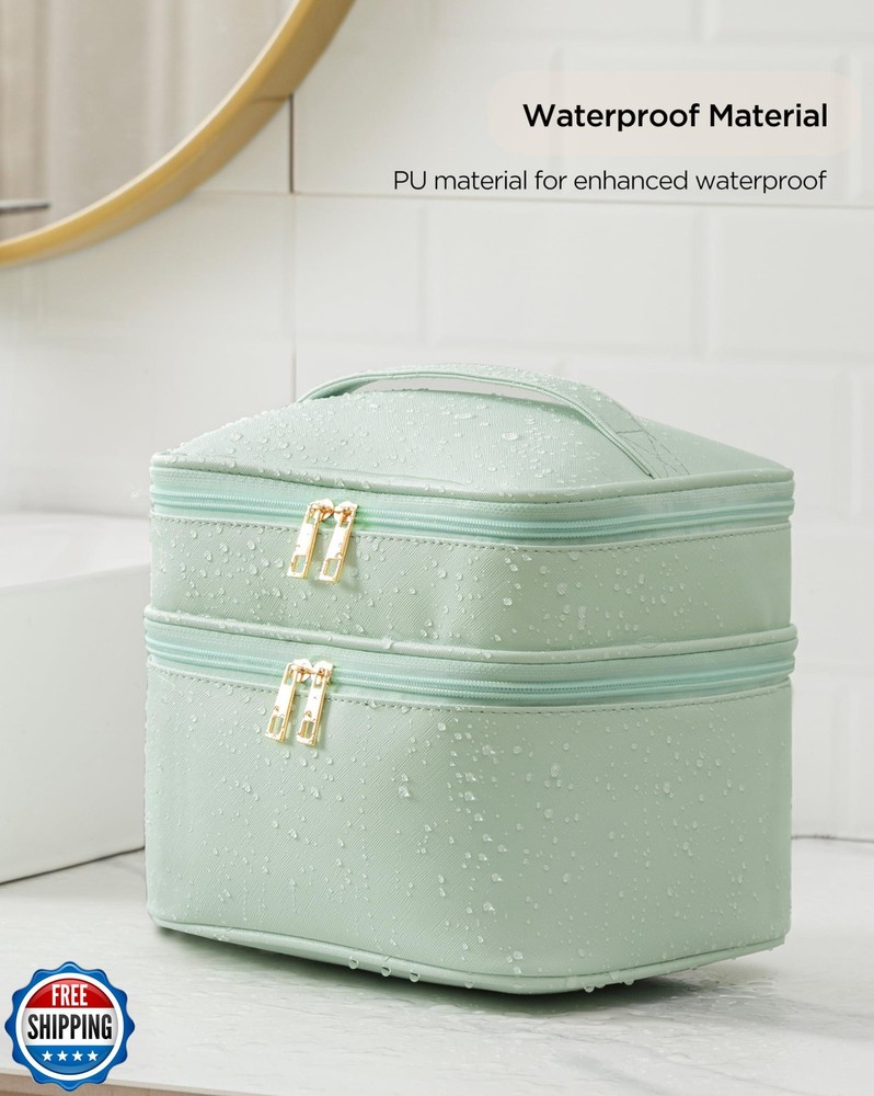 This bag is a game-changer! It holds all my makeup with room to spare, and the clever dividers keep everything perfectly organized. The waterproof material is a lifesaver for travel, and the green color is so chic. Absolutely love it!