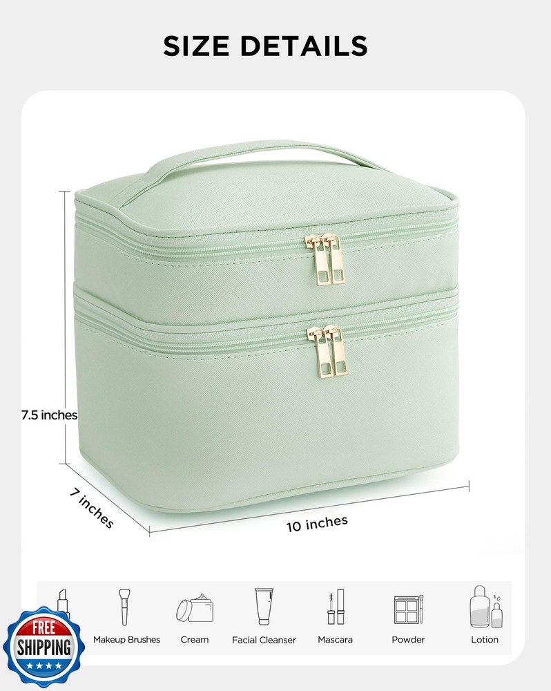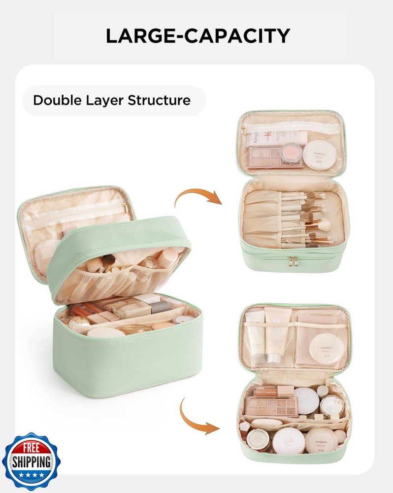 Makeup Bag for Women X-Large Travel Makeup Bag Organizer Portable Toiletry Bag Cute Makeup Bags Waterproof Leather Cosmetic Bag Makeup Case with Removable Dividers, Green Features PERFECT DESIGN - Meticulously crafted with a dual-layer design, the main compartment features a top and bottom layout, along with 2 small pockets and 6 internal elasticized pockets. Enjoy dedicated spaces for your makeup brushes, lipsticks, mirrors, and essential makeup tools, ensuring a well-organized and easily accessible beauty experience. ELEGANT LEATHER - Crafted from premium elegant leather, the Vorey cosmetic bag combines comfort, durable, and water-resistant properties with a commitment to environmental friendliness. Revel in the guilt-free indulgence of a luxurious material that aligns with your eco-conscious values. LARGE CAPACITY - Vorey makeup bag organizer strikes the perfect balance of portability and spaciousness. Ideal for a weekend trip or daily use, it easily accommodates all your essentials. Whether it's travel-sized toiletries or full-sized skincare products, including lipstick, lotion, makeup remover, foundation, concealer, eye shadow, and powder, this organizer case is your go-to solution for organized beauty on the go. EASY TO CARE - Designed with your convenience in mind, both the lining and surface of this makeup bag are waterproof and wipeable. The top flap includes 4 slots with clear makeup brush covers, ensuring a secure and easily accessible place for storing more than 10 different sizes of brushes. IDEAL GIFTS - Make a thoughtful gesture with this makeup bag, the ideal gift for various occasions. Whether it's Valentine's Day, Thanksgiving, Christmas, Mother's Day, Teacher's Day, birthdays, or anniversaries, this stylish and practical cosmetic organizer is perfect for expressing your appreciation. Shipping Free & Fast Shipping: We offer free shipping to most of the USA with a normal delivery time of 3-7 days. However, due to the current situation, additional delivery time (up to 3 weeks) may be required for some items. Alternative Carriers: We may use alternative carriers (e.g., USPS, FedEx, UPS) to ensure your package arrives safely and on time. Due to the use of multiple carriers, we are unable to provide a tracking number automatically. Handling Time: Orders are processed and shipped within 1-2 business days of receiving cleared payment. Shipping Restrictions: Shipping to Alaska, Hawaii, Puerto Rico, Guam, and other US territories may incur shipping charges or delivery restrictions. Please contact us before ordering, or your order can be refunded/cancelled. State Restrictions: Certain items may not be shipped to California due to state regulations. Contact for Tracking Updates: If you require tracking updates or have any concerns about the delivery of your order, please feel free to contact us, and we will be happy to assist you. Return Policy 30-Day Hassle-Free Returns: If you are not completely satisfied with your purchase, you can return the item for free within 30 days of receiving it for a full refund or exchange. Easy Return Process: Contact us, and we will provide you with a prepaid return shipping label and detailed instructions. No Restocking Fee: There are no restocking fees for returns. However, the buyer is responsible for return shipping costs if the return is not due to a seller"s error. Refund Processing: Refunds will be processed within 1 business day of receiving the returned item in its original condition. Feedback Your feedback is extremely important to us. We strive to provide the best products and customer service possible. If you are satisfied with your purchase, please take a moment to leave us a positive review. If you have any concerns or issues with your order, please contact us before leaving negative feedback. We are committed to resolving any problems and ensuring your satisfaction. Contact Us If you have any questions or concerns, please feel free to reach out to our customer support team. You can contact us through the eBay messaging system. We are available Monday to Friday, 9:00 am to 5:00 pm EST, and we will do our best to respond to your inquiry within 24 hours. Thank you for supporting our small family business!