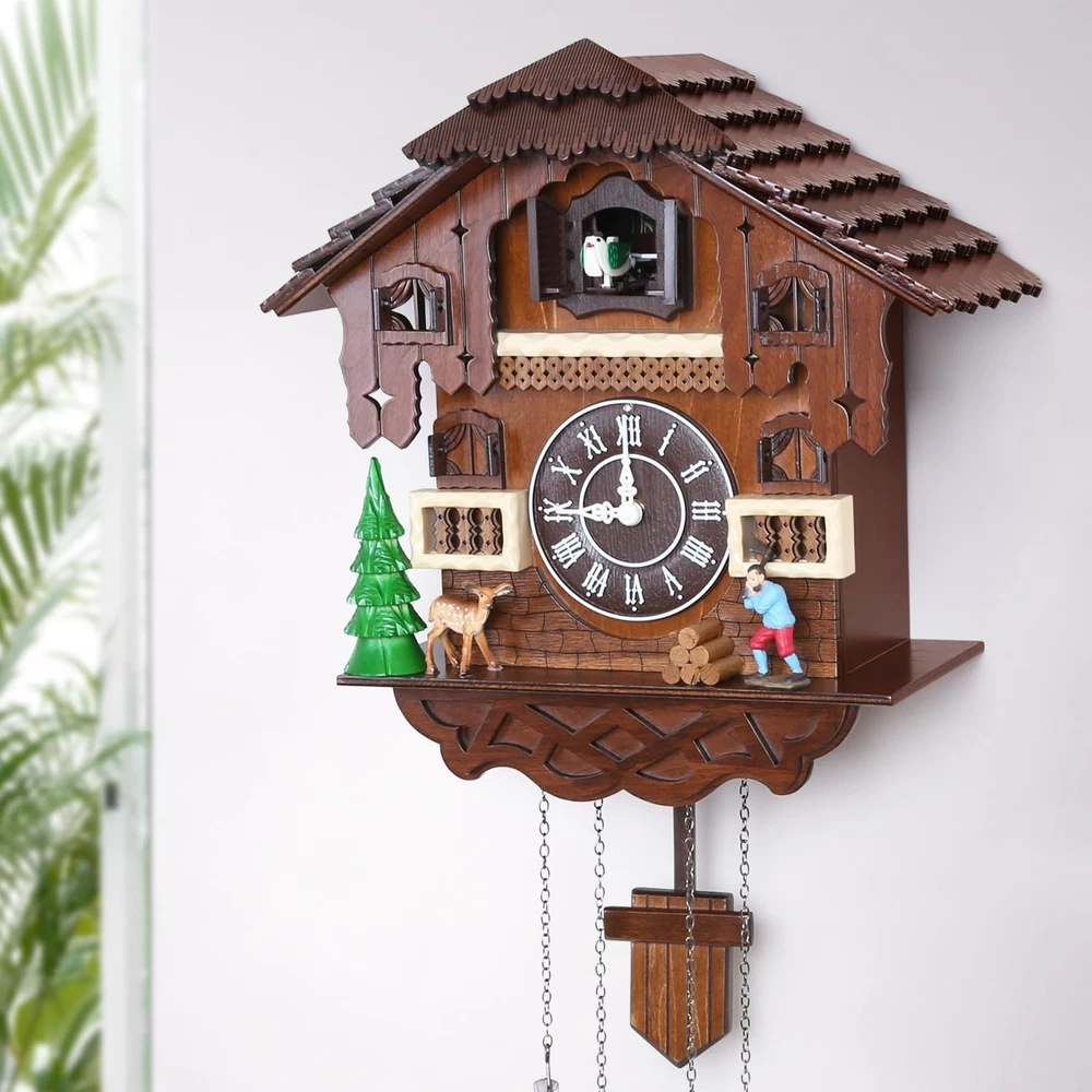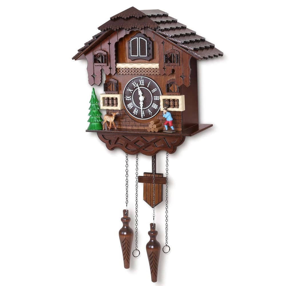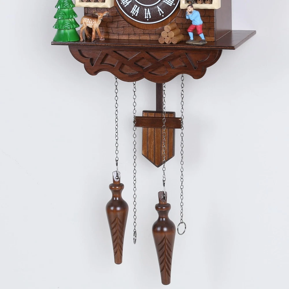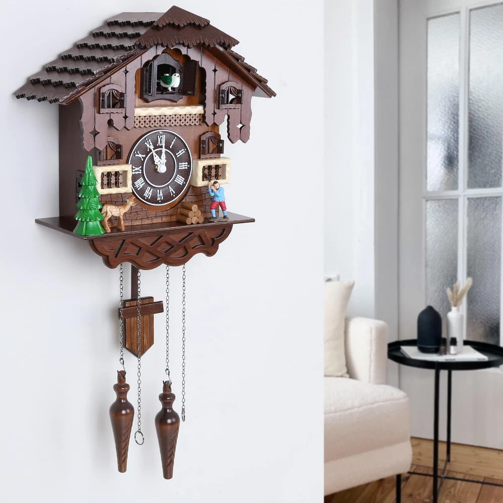 Cuckoo Clock Large Vintage Wall Clock Handcrafted Wood Cuckoo Clock House Home Decor with Singing Bird & The Man Work In Front Of The House Decoration CC23-3 Large vintage cuckoo clock made of basswood and hand engraved The birds come out and sing every hour. If you don't know how to match the time, please send us a message. Clock net size: 14.17 "H x 5.5 "W x 13.38" D Automatic nighttime shutdown of the sensor - Nighttime silencer. Adjustable volume. Powered by two D batteries (not included) 100% SATISFACTION GUARANTEE - We are so confident you will love the Cuckoo Clock that you can contact us if you have any questions. We will get back to you as soon as possible. Give it a try, we know you'll love it!Automatic nighttime shutdown of the sensor - Nighttime silencer. Adjustable volume. Powered by two D batteries (not included)