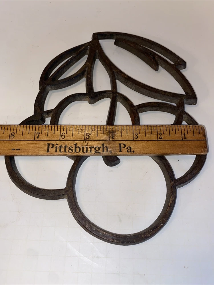 Large Vtg Dansk Cherry Metal Trivet Jens Quistgard Danish Cast Iron MCM. Shows some patina or wear. Please see last picture. Otherwise good condition. All measurements in photos. Ships next business day after payment.🙂