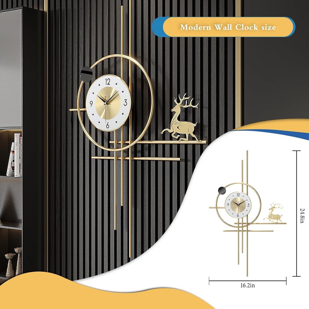 Large Wall Clock Metal Elk Battery Wall Clocks For Living Room Home Decor Gold Description With its minimalist aesthetics, this modern wall clock fits easily into various home styles, showing your elegant taste in life. It adopts advanced silent scanning movement with accurate timekeeping, making every minute and every second slip silently without disturbing your work, study, and rest. The simple and creative shape makes it a piece of art to decorate your space, keeping your life in order and beautiful. Key Features Build to Last: The high-quality iron, bake paint process, and spray paint treatment give the product high hardness, and resistance to corrosion, rust, and wear, keeping it sturdy, glossy, and practical for long-time use. Accurate & Silent: The silent scanning movement allows the hands to run smoothly and accurately while giving you a quiet living and sleeping environment, allowing you to enjoy the flow of time comfortably. Excellent Readability: The large dial with clear scales, thick clock hands, and large numerals allows you to clearly read the current time from different angles for better control of your life. Creative Appearance: The simple round dial and the golden frame make the product elegant and stylish. The unique shape design and auspicious deer decoration make it an ideal decoration for your wall and a bright scenery in your room. High Space Utilization: The wall-mounted installation can make full use of the space on the wall while beautifying your home. Spending Time with You: The wall clock records every second of the warm moments you spend with your family. It is the witness of your good memories. Battery Powered: It is powered by one AA battery(not included), which can last for a long time, allow for convenient operation, and make it work even when power fails. Ideal Gift: The stylish appearance and practical usage make it an ideal housewarming gift for your friends, families, or colleagues. Details Hanging Holes: The hanging holes on the back make the product easy to install on the wall and not easy to fall off. Time Adjustment Gear: With the gear on the back of the clock, you can easily and accurately adjust the time. Application It can be used as a wall clock and a wall decoration in bedrooms, dining rooms, living rooms, entrances, offices, hotels, classrooms, cafes, meeting rooms, corridors, study rooms, hallways, exhibition halls, foyers, bars, stores, kitchens, restaurants, and more. Specifications Color: Gold Material: Iron Style: Modern Display Type: Analog Mount Type: Wall Mounted Power Source: Battery Powered Age Range (Description): Adult Process: Bake Paint, Spray Paint Clock Movement: Silent Scanning Movement Battery Type: 1*1.5V AA Battery(Not Included) Product Size: 41*63cm/16*24.8inch Package Size: 65*53*5cm/25.59*20.87*1.97inch Gross Weight: 2kg/4.4lbs Net Weight: 1.4kg/3.08lbs Package Included 1* Wall Clock Notes Please check the size carefully before ordering. Please note that the battery is not included in the package, so you need to purchase one yourself. Please note that manually adjusting the time may damage the clock mechanism, please use the control gear on the back of the centerpiece. Please allow the slight color difference caused by the shooting light and 1-3cm error due to manual measurement, and make sure you do not mind before you order. Payment Delivery details Terms of sales About us Contact us Payment We accept ebay payment 。 Fees such as import duties, taxes are not included in the item price or shipping costs. These charges are the buyer's responsibility. Delivery details Shipping: 2-9 working days to: USA Terms of sales We maintain high standards of excellence and strive for hundred percent customer satisfaction. Feedback is very important to us. We hope that you contact us immediately before you give neutral or negative feedback, so that we can address your concerns. It is impossible to address issues if we do not know about them! About us Your satis faction is our ultimate goal. We work hard to earn your trust and future business. Our certified technicians have tested each item before shipping. The unit comes with 1 year limited warranty on all manufacturing defects. a) If you receive a defective item, you may return it or ask for a discount. Please contact us within 14 days after you receive the package. b) What you returned must be intact and in its original packaging as re? u. Customer is responsible for shipping costs of the returned item. c) We will cover the cost of shipping back t with the shipping rate indicated in the registration page. We will send you a new unit or refund the full payment you paid. Thank you. Contact us Business Hour Business Hour: Monday To Friday: 8:30 AM to 5:00 PM (Beijing China time) Due to time zones, our reply to your questions may not be immediately. But within above working time, we will reply your email within 24 hours. If it's non-workdays, please kindly be patient and wait till Monday. Please contact us with ebay message. Please feel free to contact us if you have any questions. Monday To Friday: 8:30 AM to 5:00 PM (Beijing China time) Due to time zones, our reply to your questions may not be immediately. But within above working time, we will reply your email within 24 hours. If it's non-workdays, please kindly be patient and wait till Monday. Please contact us with ebay message. Please feel free to contact us if you have any questions. Brand Unbranded Type Wall Clock Color Gold Material Iron Style Modern Display Type Wall Mounted Features 24-Hour Display Theme Wall Clock Power Source Battery Powered Movement Quartz (Battery Powered) Character Family N/A Frame Material N/A Room Living Room Finish Gold Chime Sequence N/A Era Modern MPN N/A Model N/A UPC N/A
