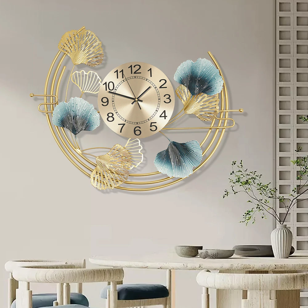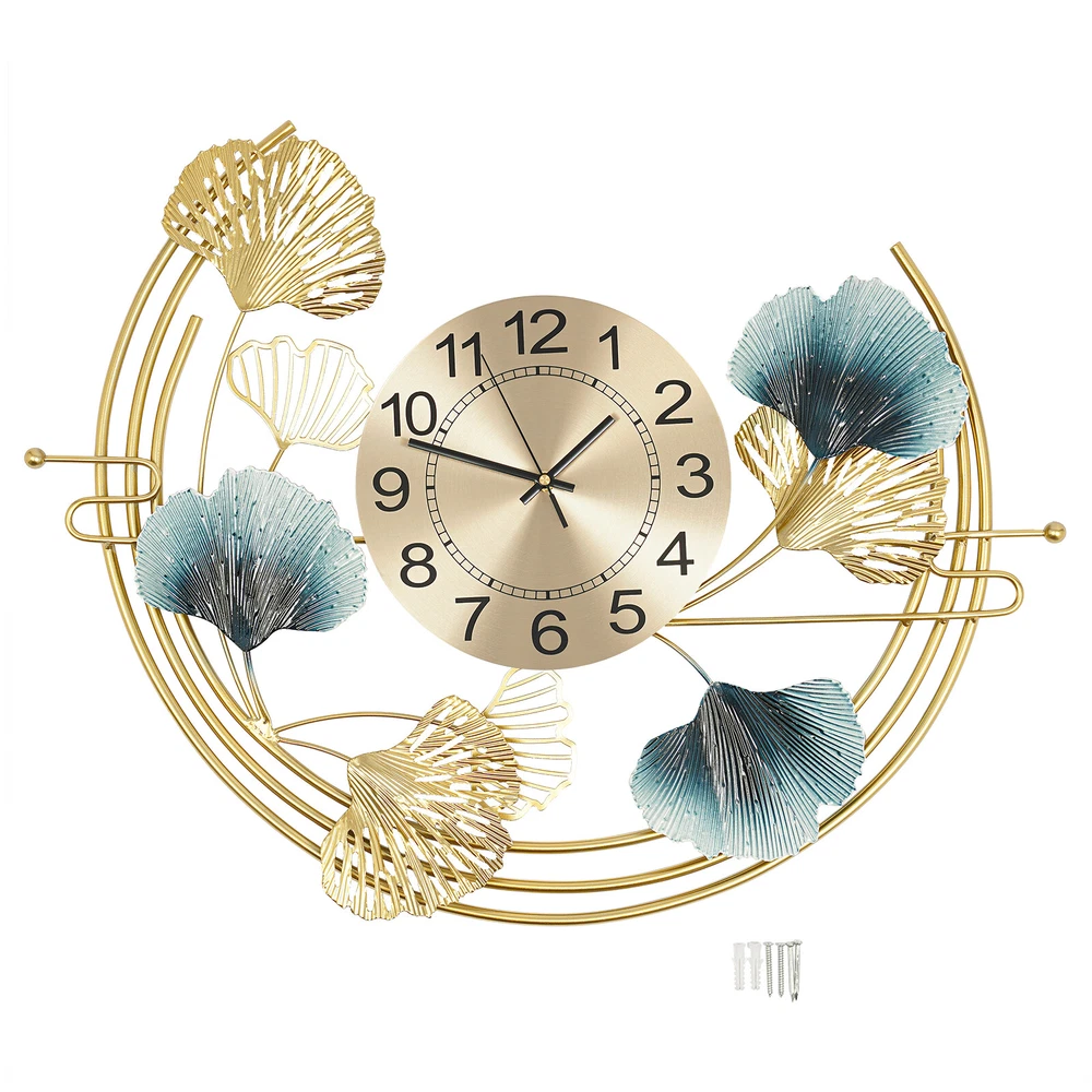 Large Wall Clock for Living Room Decor Decorative Wall Clock Gift! Description Life requires a sense of ritual. This wall clock combines modern and light art with a minimalist design, adding elegant and contemporary elements to your living space. Use it to shape a tasteful and comfortable space, advocate a quality life, and bring you a good mood! Key Features Build to Last: It is made of high-class iron with a baking paint process which is not easy to wear, deform, or fade, rust-resistant, eco-friendly. Enjoy Quiet: It features a silent movement without making extra noisy sounds, giving you and your family a peaceful evening and leisure time. Easy to Read: It features a wide round dial with clear Arabic numerals(1-12)and large black-colored hands for comfortable, at-a-glance reading. Fancy Decoration : The simple round clock dial with gold and blue ginkgo biloba exudes a unique artistic flavor, adds elegance and enhances the taste of the home space. Simple Installation : The simple construction and a hanging slot on the back of the product allows you to add modern style to your home or workspace in just a few minutes. Easy to Clean: Thanks to its smooth surface and simple construction, you can wipe the surface clean of stains with a rag. Time Witness: The wall clock records every second of the warm moments you spend with your family. It is the witness of your good memories. Ideal Gift: With the aesthetics and practicality, you can give it to your friends as a Christmas, holiday, or housewarming gift. Details Round Edges: The smooth edges enhance safety during installation. Enclosed Gear Compartment: The enclosed design protects the gear compartment from water splashing and dust accumulation, making it safer to use and easier to clean. Application It is suitable for the living room, entrance, corridor, office, study, bedroom, dining room, hall, lounge, kitchen, loft, cafe, and other occasions. How to Install 1. Use a ruler (not included) to measure the distance of the hooks and mark the holes on the wall with a pen. 2. Use a drill bit (not included) to mark the holes. 3. Insert the expanded plastic plug into the hole. 4. Put the nails into the plastic plug to hang the clock. Specification Color: Gold and Blue Shape: Round Style: Modern Material: Iron Process: Baking Paint Mounting Type: Wall Mount Power Source: Battery Powered Battery Type: 1*AA Carbon Battery(Not Included) Time Indication: 1 Lap for 12 Hours Clock Diameter: 22cm/8.66in Product Size(L*H): 67*52cm/26.38*20.47in Package Size: 72*58*8cm/28.35*22.83*3.15in Gross Weight: 2.2kg/4.85lbs Net Weight: 2kg/4.4lbs Package Included 1* Wall Clock Other Accessories for Use Notes Please use 1 AA carbon battery (not included), and do not use high-performance batteries such as alkaline batteries that will affect the life of the movement and sometimes even the accuracy of the time. If the time is inaccurate during use, please replace the battery in time. If you want to install it on tiles, please install it at the joints to avoid damaging the surface of the tiles. If the product accidentally sticks to acid (e.g. sulfuric acid, vinegar) or alkali (e.g. nail polish, soapy water, soda), you should immediately rinse off the stained area with water and then dry it with a dry cotton cloth(not included). We recommend using cotton fabric as a rag to wipe the surface of the product. Please avoid direct sunlight on the product from windows. Please allow the slight color difference caused by the shooting light and 1-3cm error due to manual measurement, and make sure you do not mind before you place the order. Payment Delivery details Terms of sales About us Contact us Payment We accept ebay payment 。 Fees such as import duties, taxes are not included in the item price or shipping costs. These charges are the buyer's responsibility. Delivery details Shipping: 2-9 working days to: USA Terms of sales We maintain high standards of excellence and strive for hundred percent customer satisfaction. Feedback is very important to us. We hope that you contact us immediately before you give neutral or negative feedback, so that we can address your concerns. It is impossible to address issues if we do not know about them! About us Your satis faction is our ultimate goal. We work hard to earn your trust and future business. Our certified technicians have tested each item before shipping. The unit comes with 1 year limited warranty on all manufacturing defects. a) If you receive a defective item, you may return it or ask for a discount. Please contact us within 14 days after you receive the package. b) What you returned must be intact and in its original packaging as re? u. Customer is responsible for shipping costs of the returned item. c) We will cover the cost of shipping back t with the shipping rate indicated in the registration page. We will send you a new unit or refund the full payment you paid. Thank you. Contact us Business Hour Business Hour: Monday To Friday: 8:30 AM to 5:00 PM (Beijing China time) Due to time zones, our reply to your questions may not be immediately. But within above working time, we will reply your email within 24 hours. If it's non-workdays, please kindly be patient and wait till Monday. Please contact us with ebay message. Please feel free to contact us if you have any questions. Monday To Friday: 8:30 AM to 5:00 PM (Beijing China time) Due to time zones, our reply to your questions may not be immediately. But within above working time, we will reply your email within 24 hours. If it's non-workdays, please kindly be patient and wait till Monday. Please contact us with ebay message. Please feel free to contact us if you have any questions.