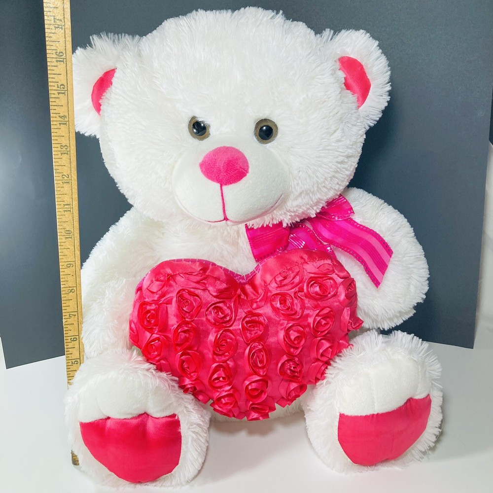 CB008 Seasonal Sensations White Teddy Bear Plush Stuffed Animal Heart Valentines 18”. Sits at 18” tall. Larger plush.