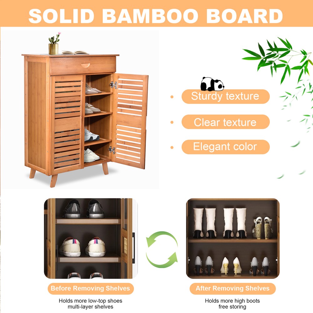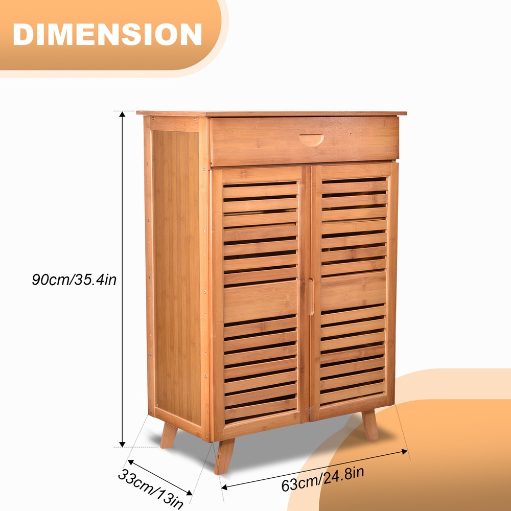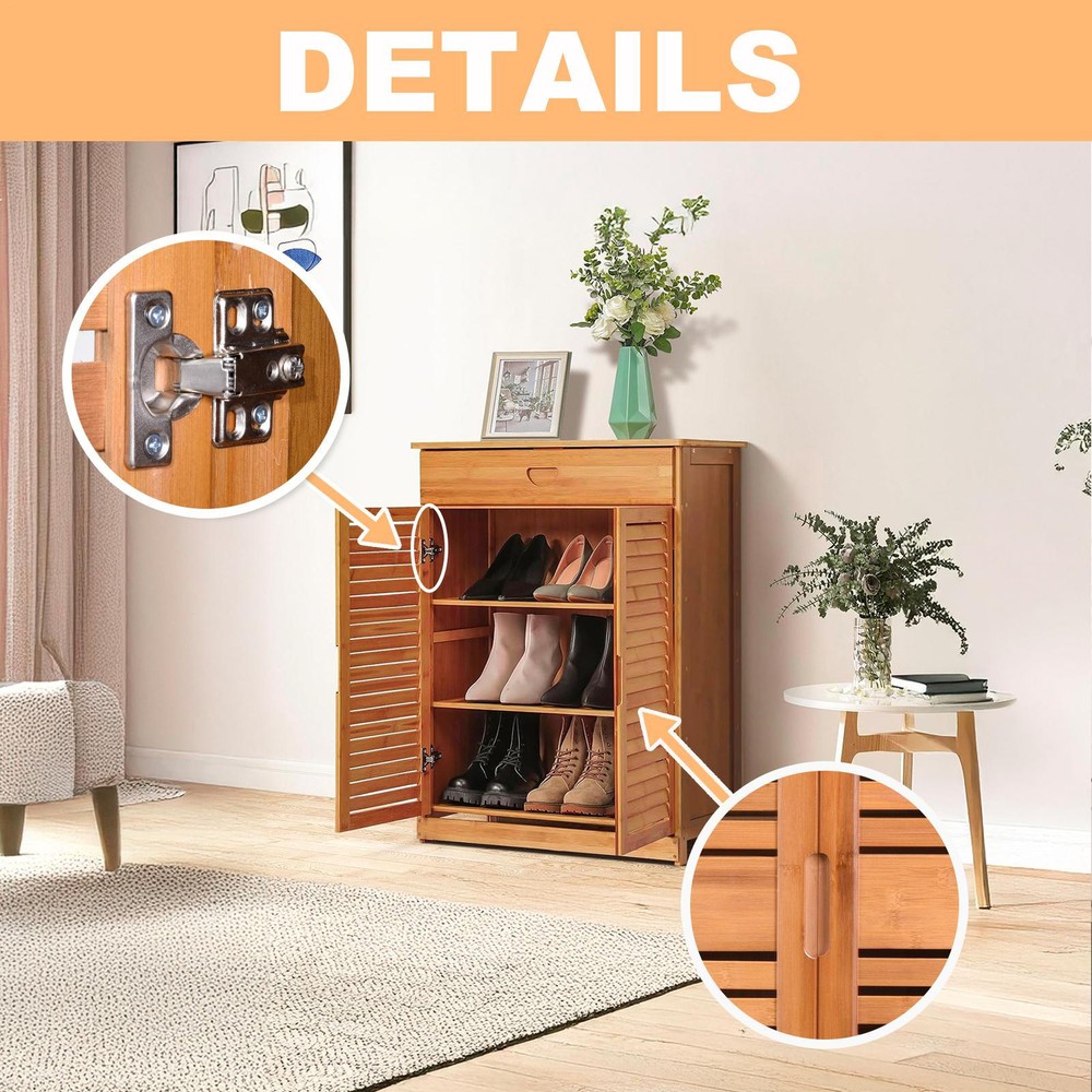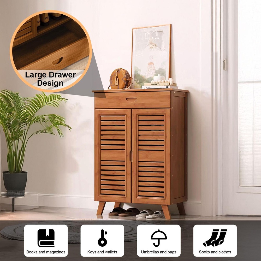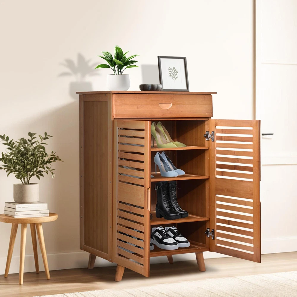 Large Wooden Shoe Cabinet Storage Organizer with Cupboard and Rack for Home