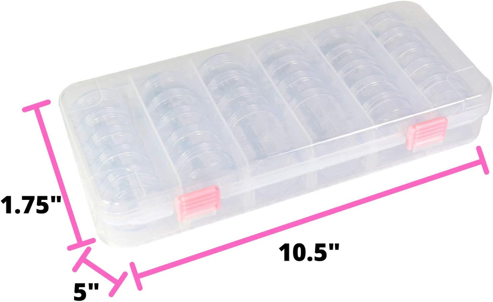 Best Beading Storage - Our 28 compartment bead storage case is an amazing beading storage option Premium Design & Construction - These jars and case are super durable for an easy beading experience Endless Organizing Options - This large storage case with 28 jars covers a wide variety of uses 100% Satisfaction - Everything Mary offers a 100% no questions money back The Difference For Crafters - We offer unique storage totes & bags for the everyday crafter Product Description