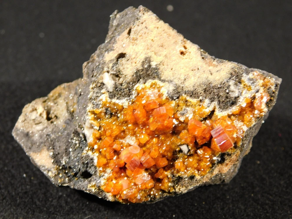 Hello, here is a Larger! 100% natural Vanadinite Crystal cluster with PERFECT shiny DEEP ORANGE crystals on a contrasting BLACK colored matrix! This cluster was mined in Morocco. Please note that this piece is WAY nicer in person as it is difficult to get all of the detail and true colors to show up in the photos! The overall cluster or matrix measures around 3 3/8" or 8.35cm at its biggest or from opposing side to side. INTERNATIONAL BUYERS PLEASE NOTE : Import duties and taxes are not included in the price of the item or the shipping charges. These are the buyers responsibility. If you are concerned about them, please check with your country's customs office before purchasing. RETURN POLICY We guarantee you will be satisfied with your item or we'll refund your purchase price, less shipping charge, upon safe return of the item in original condition within 14 days. Prior to returning the item, please contact within 48 hours of receiving item. Buyer is responsible for all return shipping charges.