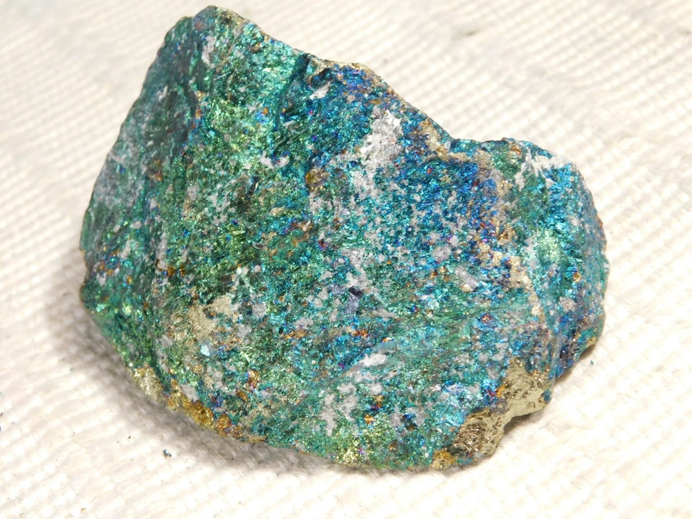 Hello, Here is a Larger! natural and very colorful Bornite, Chalcopyrite, Peacock Ore or Peacock copper with intense IRIDESCENT Blue, Copper, Teal, Green, Gold, Silver and or Purple colors from Mexico! Bornite tarnishes to various iridescent shades of green, blue to purple in places. Its striking iridescence gives it the nickname peacock copper or peacock ore...neat! The overall piece measures a nice 3" or 7.55cm at its biggest or from opposing side to side. INTERNATIONAL BUYERS PLEASE NOTE : Import duties and taxes are not included in the price of the item or the shipping charges. These are the buyers responsibility. If you are concerned about them, please check with your country's customs office before purchasing. RETURN POLICY We guarantee you will be satisfied with your item or we'll refund your purchase price, less shipping charge, upon safe return of the item in original condition within 14 days. Prior to returning the item, please contact within 48 hours of receiving item. Buyer is responsible for all return shipping charges.
