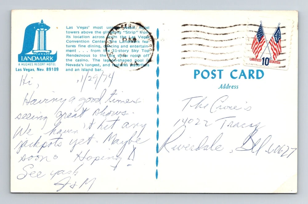 Las Vegas NV-Nevada, Landmark Hotel, Advert, Vintage Postcard