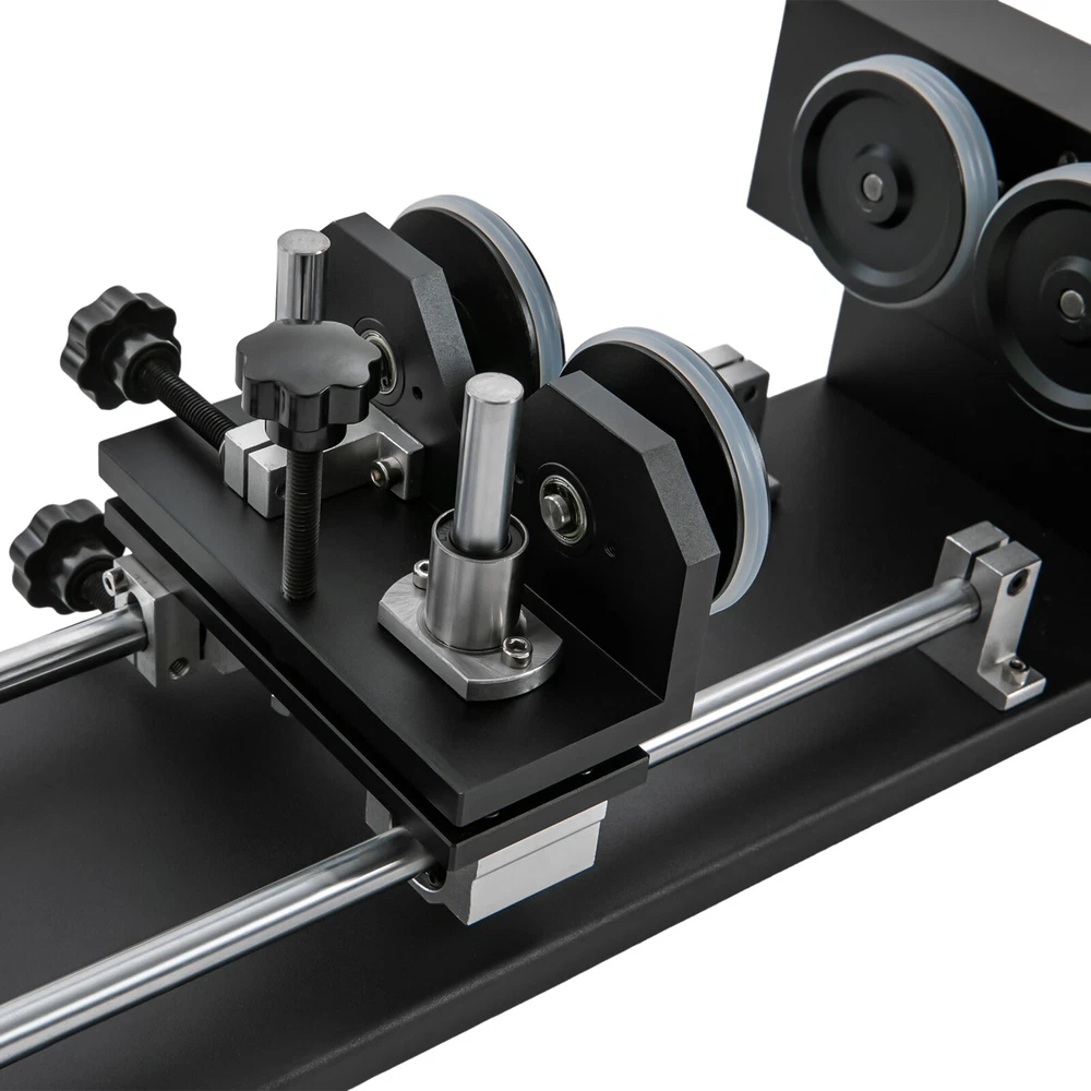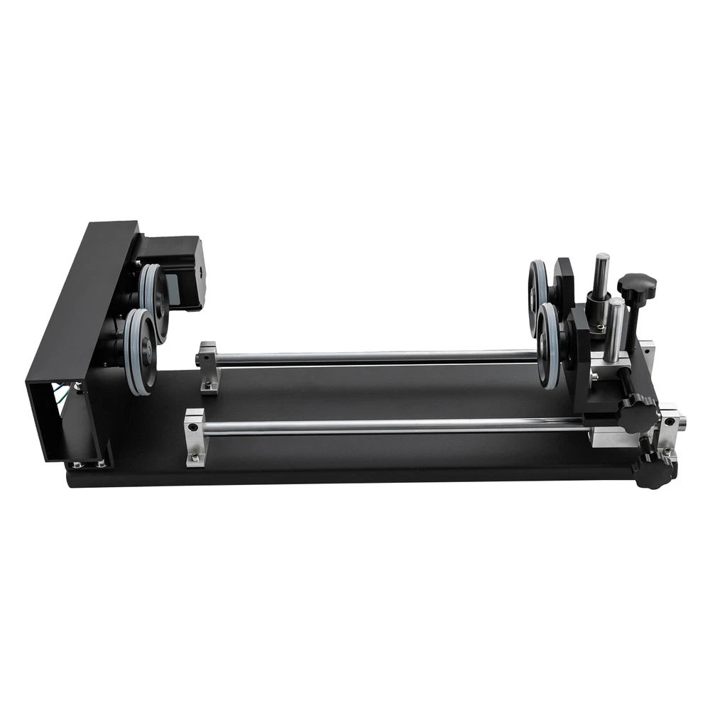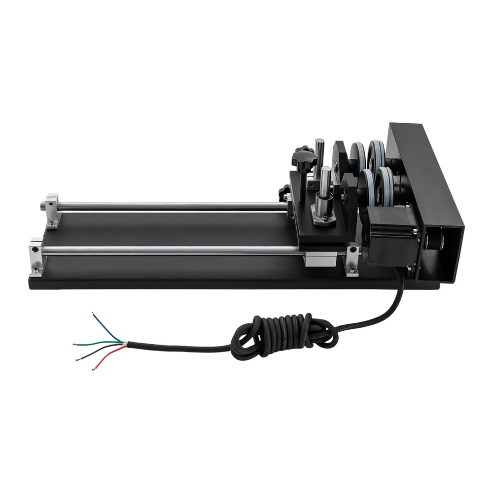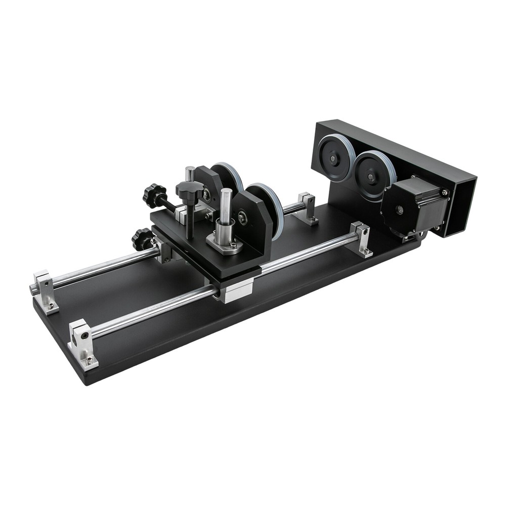 Details Rounded Corners: The rounded edges are burr-free, which is comfortable to touch and can care for your skin. Multiple Knobs: The plum-shaped knobs allow for easy and convenient adjustment without slipping. Application It is suitable for personal DIY, home, or business. It can be used in conjunction with a 50W, 60W, 80W, 100W, and 130W CO2 laser engraver for 360° engraving of cylindrical and round objects, including beverage cans, eggshell cups, goblets, wine bottles, baseballs, baseball bats, cups, bottles, flutes, gourds, tubes, pipes, bowls, etc. How to Carve a Cylindrical Object 1. Connect the motor on the rotary axis to the drive (Y-axis on the machine). Please make sure the phase is matching. If your motor driver on the machine is 2-phase(Port A+, A-, B+, B-); th Laser Rotary Axis for 50W 60W 80W 100W 130W CO2 Laser Engraver Cutter Laser Engraver Rotary Attachment, Rotating Carving Fixture, Laser Rotary Attachment Rotary Axis Description As a skilled engraving worker, the laser carving rotary axis would be an ideal addition to your toolset! It allows for accurate and efficient marking of small areas, maximizing your productivity while delivering precision. Not only that, but it has an engraving diameter of 0.4-5.9" and an engraving length of 1.97-13.78", providing you with maximum versatility. Get yours today and start enhancing your DIY projects with this must-have tool! Key Features Build to Last: It is crafted from high-quality aluminum alloy and steel with anodizing and chamfering processes, which is corrosion-resistant and rust-proof , maintains long-term brightness and performance, and has a long service life. Powerful Function: The 2-phrase stepper motor with an adjustable speed of 10-200rpm allows it to work with lasers for high precision and more comprehensive marking. DIY Carving: The 3.15-5.12 inches axis height makes it carve lengths of 1.97-13.78 inches, carving diameters of 0.4-5.9 inches, and applicable workpiece diameters of 0.4-5.9 inches, meeting your DIY carving needs. With it, you can achieve 360° bi-directional rotary marking, which is convenient. Ready to Go: This tool comes with a 4-wire connection cable that can be connected to a dedicated port on a laser engraver, making it easy to engrave. Simply configure the software settings and start engraving. The tool is also pre-assembled and modular, which saves valuable engraving time. Stable Structure: The rubber pads on the bottom can effectively prevent slipping and improve the stability of the product when used. Easy to Clean: Thanks to its smooth surface and skeletonized structure, you can clean it with a soft rag. Protective Package: We use the sponge to wrap our product, aiming to maximize the protection of the product from damage during transportation. Buy with Confidence: We are honored that you have chosen our product. We have sufficient confidence in the quality of the product so that you can buy it confidently. But if you have any questions, you can contact our customer service, he will patiently answer and solve your problems. Details Rounded Corners: The rounded edges are burr-free , which is comfortable to touch a nd can care for your skin. Multiple Knobs: The plum-shaped knobs allow for easy and convenient adjustment without slipping. Application It is suitable for personal DIY, home, or business. It can be used in conjunction with a 50W, 60W, 80W, 100W, and 130W CO2 laser engraver for 360° engraving of cylindrical and round objects, including beverage cans, eggshell cups, goblets, wine bottles, baseballs, baseball bats, cups, bottles, flutes, gourds, tubes, pipes, bowls, etc. How to Carve a Cylindrical Object 1. Connect the motor on the rotary axis to the drive (Y-axis on the machine). Please make sure the phase is matching. If your motor driver on the machine is 2-phase(Port A+, A-, B+, B-); the 3-phase motor's port is U, V, and W. 2. Enable rotation in the software(not included) and set the correct values for engraving part diameter and circle pulse. The rotary reduction ratio is 1:2. Specifications Material: Aluminum Alloy, Rubber and Steel Process: Anodizing and Chamfering Motor Type: 2-Phase Stepper Motor Mounting Type: Freestanding Color: Black Rotation Type: Roller Power Source: Corded Electric Adjustable Speed: 10-200rpm Gross Weight: 10kg/22lbs Net Weight: 9kg/19.84lbs Axis Height: 80-130mm/3.15-5.12in Engraving Diameter: 10-150mm/0.4-5.9in Engraving Length: 50-350mm/1.97-13.78in Applicable Workpiece Diameter: 10-150mm/0.4-5.9in Package Size: 67*20*27cm/26.38*7.87*10.63in Product Size: 49*26*13cm/19.3*10.2*5.1in Package Included 1* Laser Rotary Axis Notes Please note that the laser machine is not included in this product. This item is a roller 2-axis (with a 2-phase stepper motor) with 4 leads , please confirm before ordering. Please allow the slight color difference caused by the shooting light and 1-3cm error due to manual measurement, and make sure you do not mind before you order. Payment Delivery details Terms of sales About us Contact us Payment We accept ebay payment 。 Fees such as import duties, taxes are not included in the item price or shipping costs. These charges are the buyer's responsibility. Delivery details Shipping: 2-9 working days to: USA Terms of sales We maintain high standards of excellence and strive for hundred percent customer satisfaction. Feedback is very important to us. We hope that you contact us immediately before you give neutral or negative feedback, so that we can address your concerns. It is impossible to address issues if we do not know about them! About us Your satis faction is our ultimate goal. We work hard to earn your trust and future business. Our certified technicians have tested each item before shipping. The unit comes with 1 year limited warranty on all manufacturing defects. a) If you receive a defective item, you may return it or ask for a discount. Please contact us within 14 days after you receive the package. b) What you retur