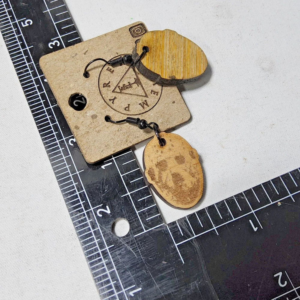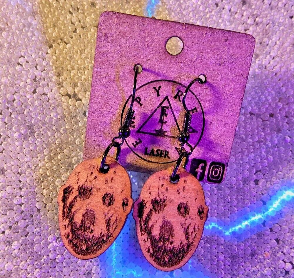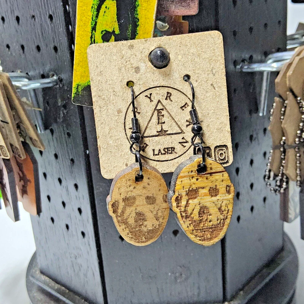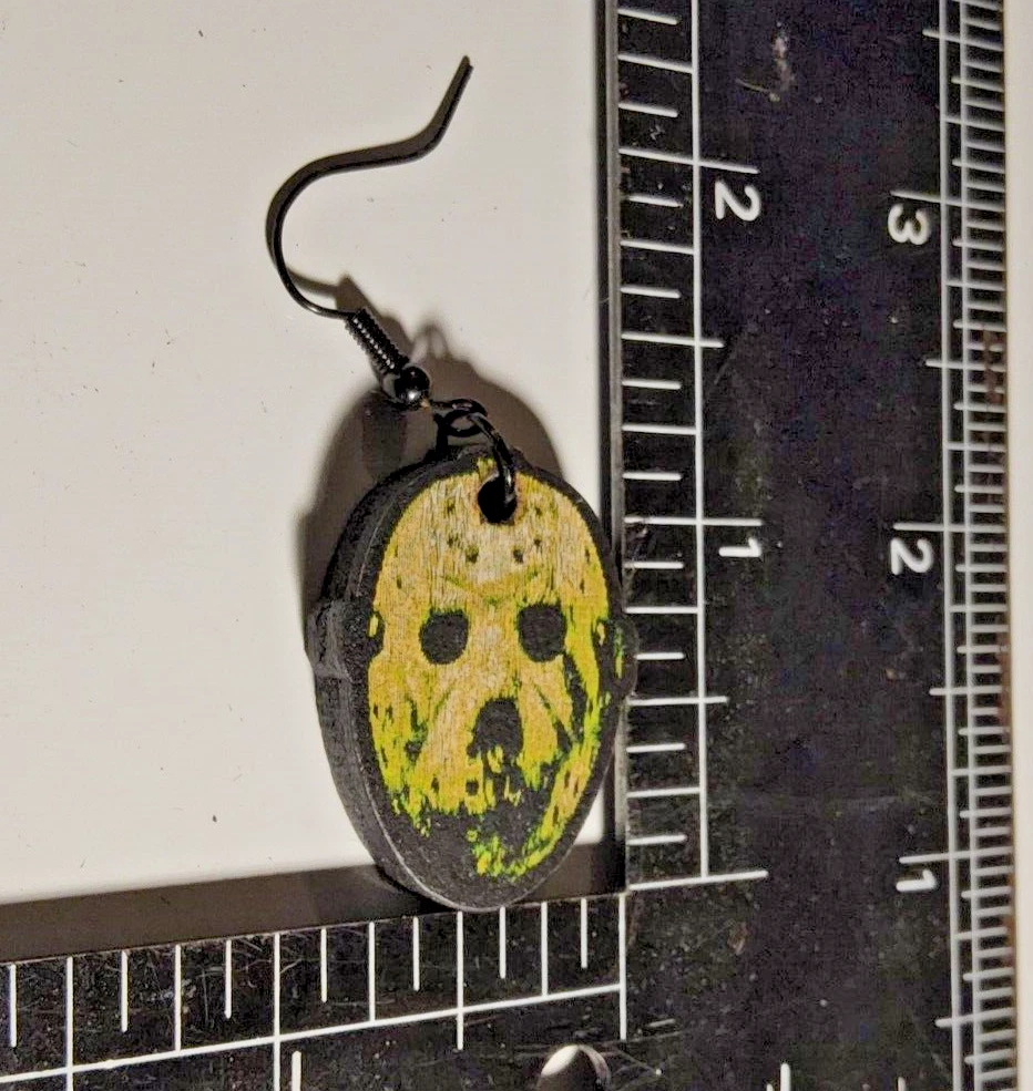 Laser engraved cut Jason Voorhees custom art earrings horror fashion friday 13th Sketched a pic of Jason Voorhees on tablet, then transferred design to my laser machine to engrave then cut out earring shapes. Measures 1"h x .75"w x 1/4"d. Loaded with hypoallergenic metal ear hooks. Check out plenty of other lasered creations of mine in shop. Order a few pieces and I'll give you a bundled art deal. Not doing customs at the moment but may be persuaded to fire up the laser for right project. Ebay reselling keeps me busy. Message me to find out. Thanks again for visiting my Ebay shop. ***Treasure Suite offers you many pieces of my art prints now*** ###This section is for laser cut sublimation prints of my digital art. Measurements vary by piece. ### *Welcome to my unique collection of digital art, where creativity meets craftsmanship! Each piece in this category features my original digital designs, heat pressed into vibrant sublimation prints on laser cut whiteboard material. Some are engraved then hand painted. These art pieces are not just decorations, they are collectibles that bring a touch of gothic, rock and roll, horror, pin-up, and lowbrow art into your space. *perfect for:* *man cave *castle *bungalow *abode *domicile *penthouse *flat *cabin *studio *boutique hotel *yacht *etc *These pieces make fantastic gifts for art enthusiasts and collectors alike. Who doesn't enjoy vibrant digital art of out of this world space huntresses, demon witches, cyberpunk vixen cyborgs, spooky mistresses, hearses, hotrods, and so on? ***May consider custom orders of laser cut or engraved items.***