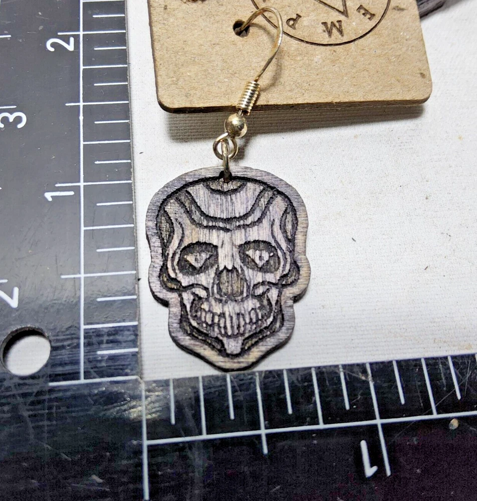 Laser engraved cut grey skull custom art earrings horror fashion goth halloween Sketched a pic of a black skull on tablet, then transferred design to my laser machine to engrave then cut out earring shapes. Measures 1"h x .75"w x 1/4"d. Loaded with hypoallergenic metal ear hooks. Check out plenty of other lasered creations of mine in shop. Order a few pieces and I'll give you a bundled art deal. Not doing customs at the moment but may be persuaded to fire up the laser for right project. Ebay reselling keeps me busy. Message me to find out. Thanks again for visiting my Ebay shop. ***Treasure Suite offers you many pieces of my art prints now*** ###This section is for laser cut sublimation prints of my digital art. Measurements vary by piece. ### *Welcome to my unique collection of digital art, where creativity meets craftsmanship! Each piece in this category features my original digital designs, heat pressed into vibrant sublimation prints on laser cut whiteboard material. Some are engraved then hand painted. These art pieces are not just decorations, they are collectibles that bring a touch of gothic, rock and roll, horror, pin-up, and lowbrow art into your space. *perfect for:* *man cave *castle *bungalow *abode *domicile *penthouse *flat *cabin *studio *boutique hotel *yacht *etc *These pieces make fantastic gifts for art enthusiasts and collectors alike. Who doesn't enjoy vibrant digital art of out of this world space huntresses, demon witches, cyberpunk vixen cyborgs, spooky mistresses, hearses, hotrods, and so on? ***May consider custom orders of laser cut or engraved items.***