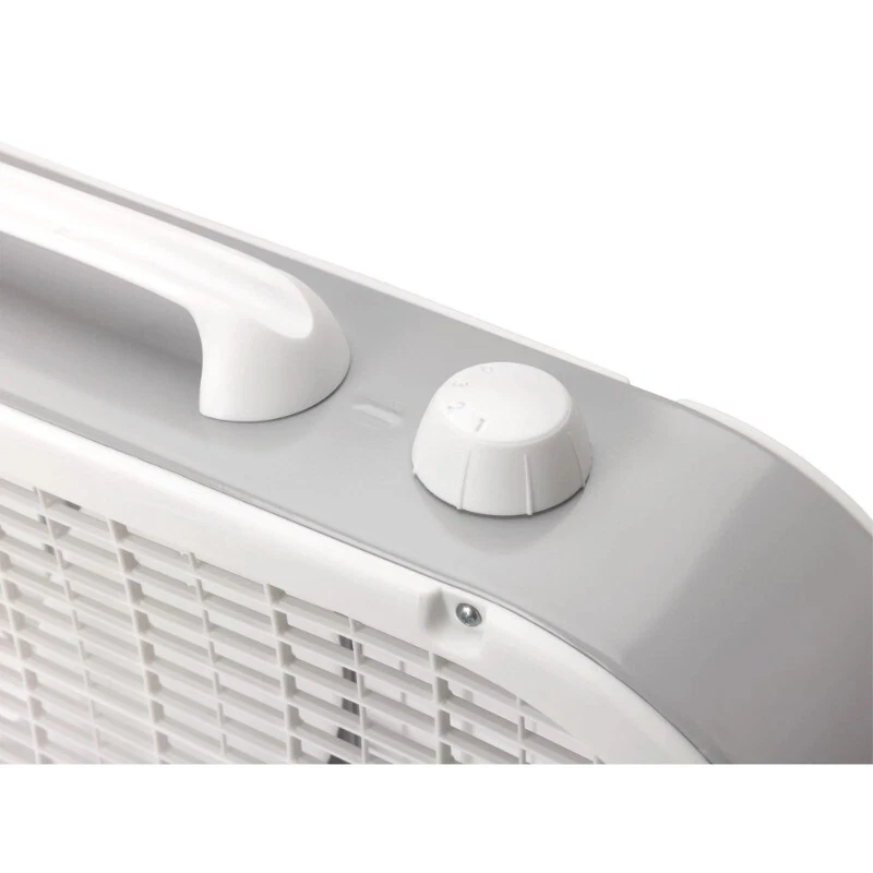 The Classic Lasko Box Fan with a 20 inch fan blade creates efficient airflow to keep your home or work space cool and comfortable and helps to dry out dampness. Everyone needs a great basic, and this box fan is just that. Features 3 quiet fan speeds, top-mounted controls for easy operation, built-in handle for portability, and a durable metal frame. The front grill and fan blades are removable for easy maintenance to maximize efficiency. This box fan also features a weather-resistant motor for worry-free indoor window use. No tools are required for set-up or maintenance, adding even more convenience. Easy-to-use manual controls 3 quiet fan speeds Weather-resistant fan motor for worry-free window use No tools are required for set-up or maintenance, Built-in carry handle Can be used on tables, floors or in windows Perfect for bedrooms, living rooms, home offices and more Use in conjunction with an air conditioner to boost cooling airflow Equipped with Lasko's trusted, fused safety plug