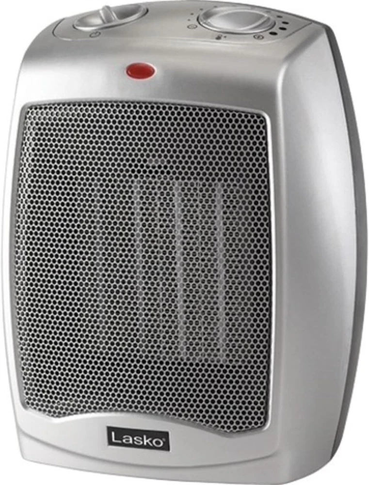 Lasko Ceramic Adjustable Thermostat Space Heaters, Non-Oscillating, Silver Product Details Brand: Lasko Special Feature: 2 Heat Settings, Fan Only Mode, Built-In Carry Handle, Over Heat Protection Color: Silver Form Factor: Table Indoor/Outdoor Usage: Indoor Power SourceHeating Method: Corded ElectricForced Air Item WeightHeat Output: 3.18 Pounds1500 Watts 3 Quiet Settings - including high heat, low heat, and fan only make this electric space heater ideal for warming up an area in your home. Combined with an adjustable thermostat this personal space heater is great for small areas. The product does not have a remote Adjustable Thermostat - allows you to adjust the heater's 1500 watt ceramic heating element. With 11 different temperature settings you're sure to find a comfortable setting. Simply turn the dial to the heat setting you desire and enjoy comforting warmth. Convenient Carry Handle - makes it easy to move the space heater. Thanks to the heater's compact size and convenient carry handle you can easily move the heater from the kitchen, to the bedroom, or even under the desk. Heating coverage: 300 Sq. ft Built-in Safety Features - overheat protection ensures the space heater does not overheat even if left on for an extended amount of time. The space heater also features a cool-touch exterior. This allows the the space heater's body to stay cool even when it's on high. Fully Assembled - allows you to take the heater out of the box and have it working in minutes. Simply plug the heater into a wall outlet, select your desired heat and thermostat settings, and enjoy the warmth from your new Lasko space heater. Power source type: Corded Electric . Voltage: 110 Volts . Top-mounted manual controls The Lasko Electric Ceramic Heater is made for those chilly days in your home or at the office. Its smaller size provides effective, consistent warmth and won't get in the way. This Lasko heater offers a convenient carry handle that makes it easy to transport from room to room. This 1500W heater can be placed anywhere from the floor to the table or wherever it's needed the most. With 2 heat settings, a fan only mode and an adjustable thermostat you can set it to your liking and comfort level. This space heater is also suitable for use in a garage, basement, cottage or cabin. This space heater is ETL listed and features a self-regulating ceramic element, overheat protection and cool-touch exterior. This unit comes with a setting that will automatically shut it off preventing it from getting too hot. This heater is ideal for smaller spaces. Features a 6-foot power cord. Comes with a 3-year limited warranty. For your safety, do not use space heaters with extension cords. For indoor use only. Condition: New