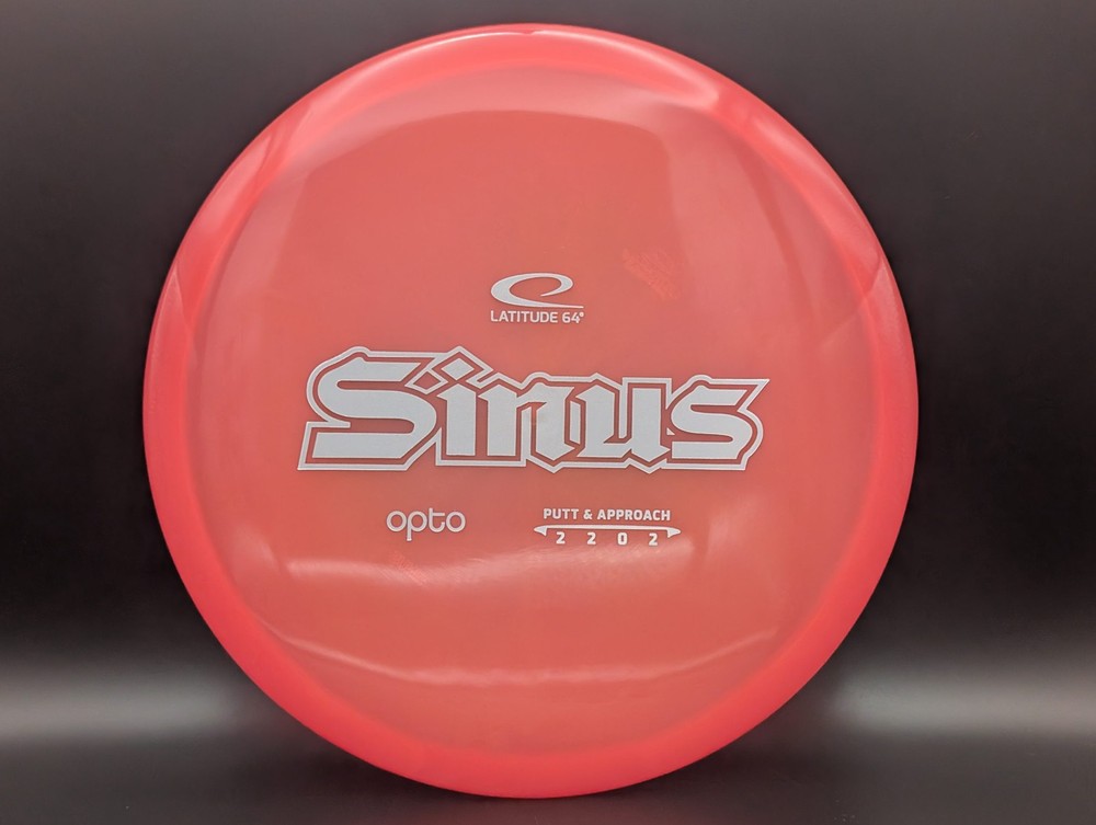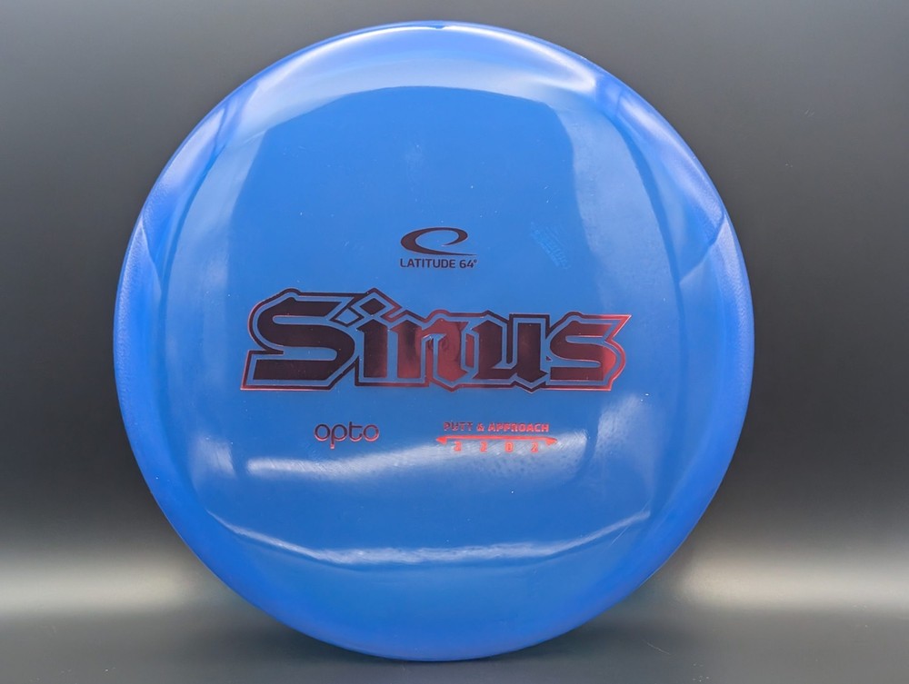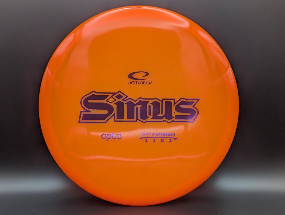Speed 2 | Glide 2 | Turn 0 | Fade 12 The new Sinus is an approach disc you can count on. Sinus was one of the very first Latitude 64 molds back in 2006, here it is redesigned for the future with a smoother feel and even more overstability. Sinus likes to fly slow and predictable. You will love how it will fly straighter and straighter the more you use it. The disc pictured when you select a variation is the disc you will receive! Shipped in a bubble mailer for protection.