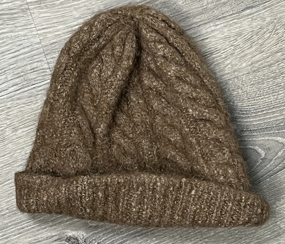 Latte Brown Beanie Hat Womens Small Fuzzy Casual Knit Cap Warm Ski Toque Beenie Widest width 9.5”, Length 9”, no tags