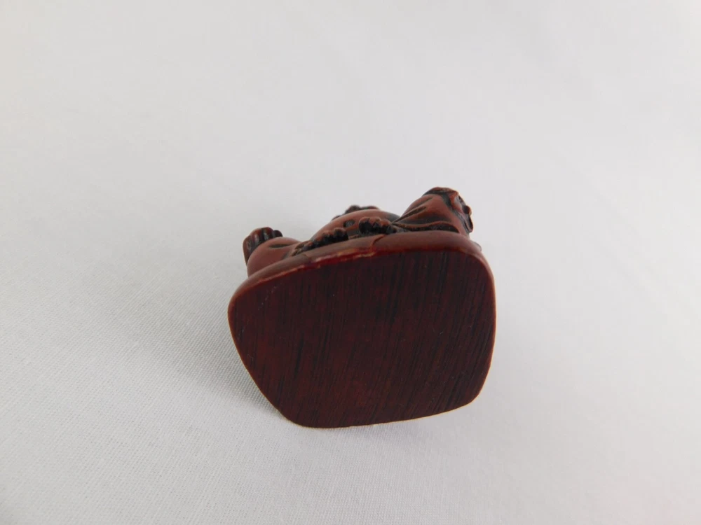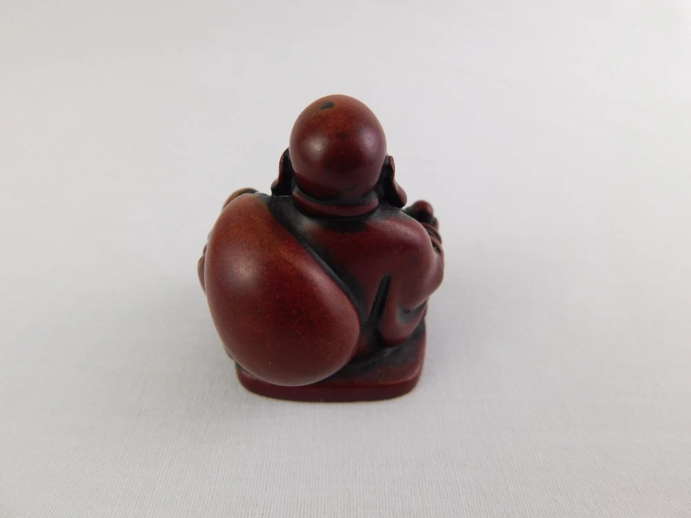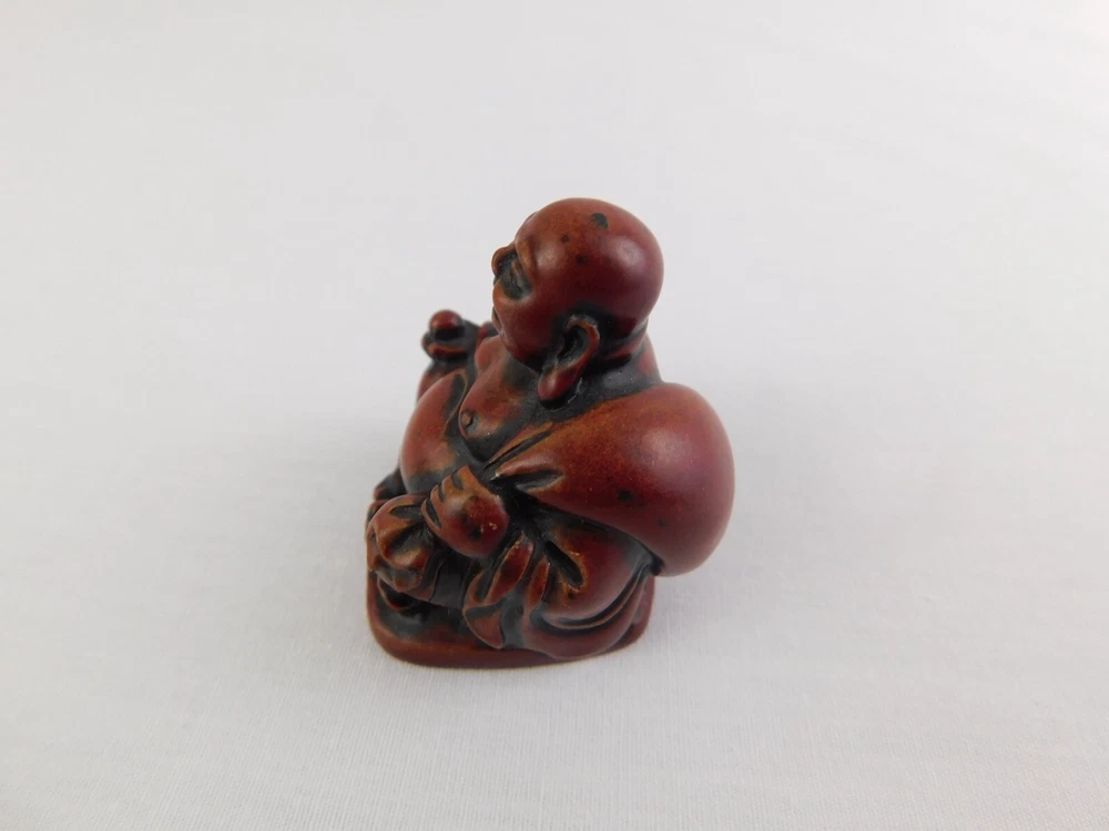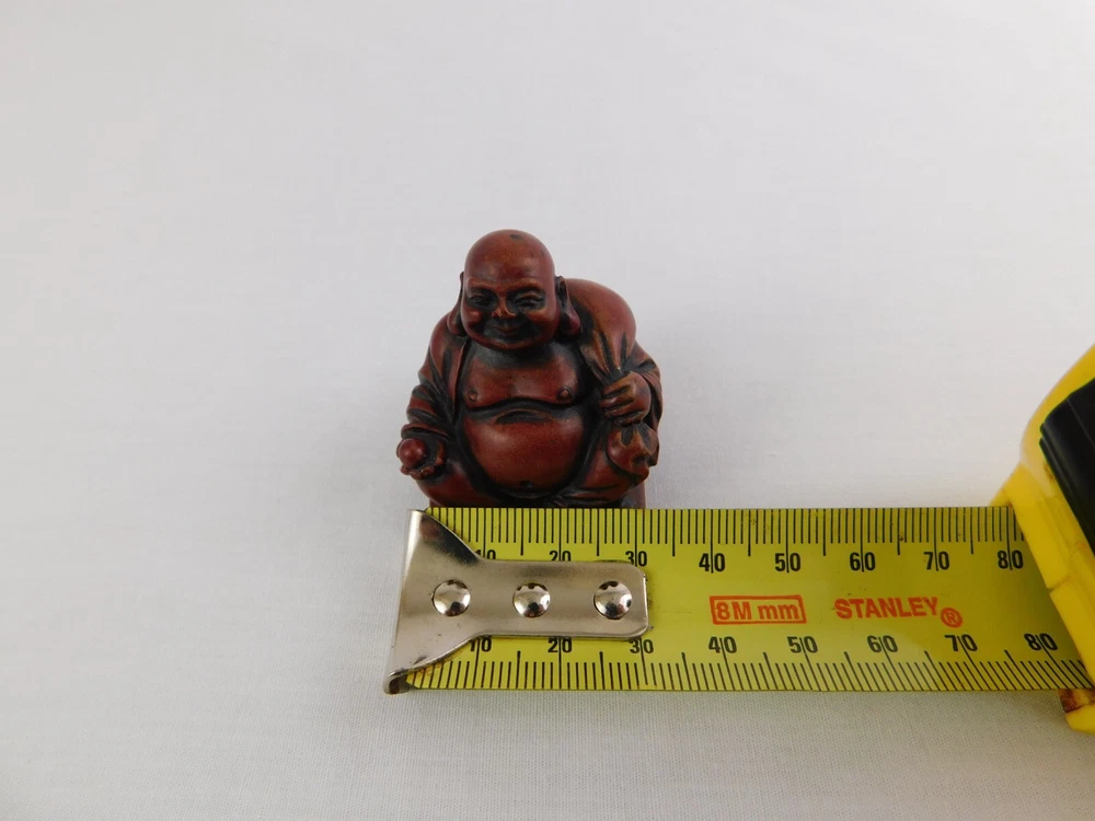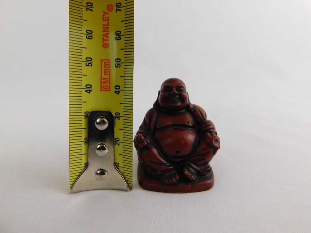 Bring home the positive energy with this laughing Buddha miniature figurine. Made of high-quality resin, this small 4.5cm sculpture features intricate carvings and a red/brown finish. The sitting Buddha is perfect for those who want to incorporate Feng Shui in their home decor or simply add an Oriental touch. Suitable for both teens and adults, this laughing Buddha mini statue is an excellent addition to any collection of sculptures or figurines. Its small size makes it easy to display on a shelf, desk or table. Get yours today and bring a smile to your face every time you see it.