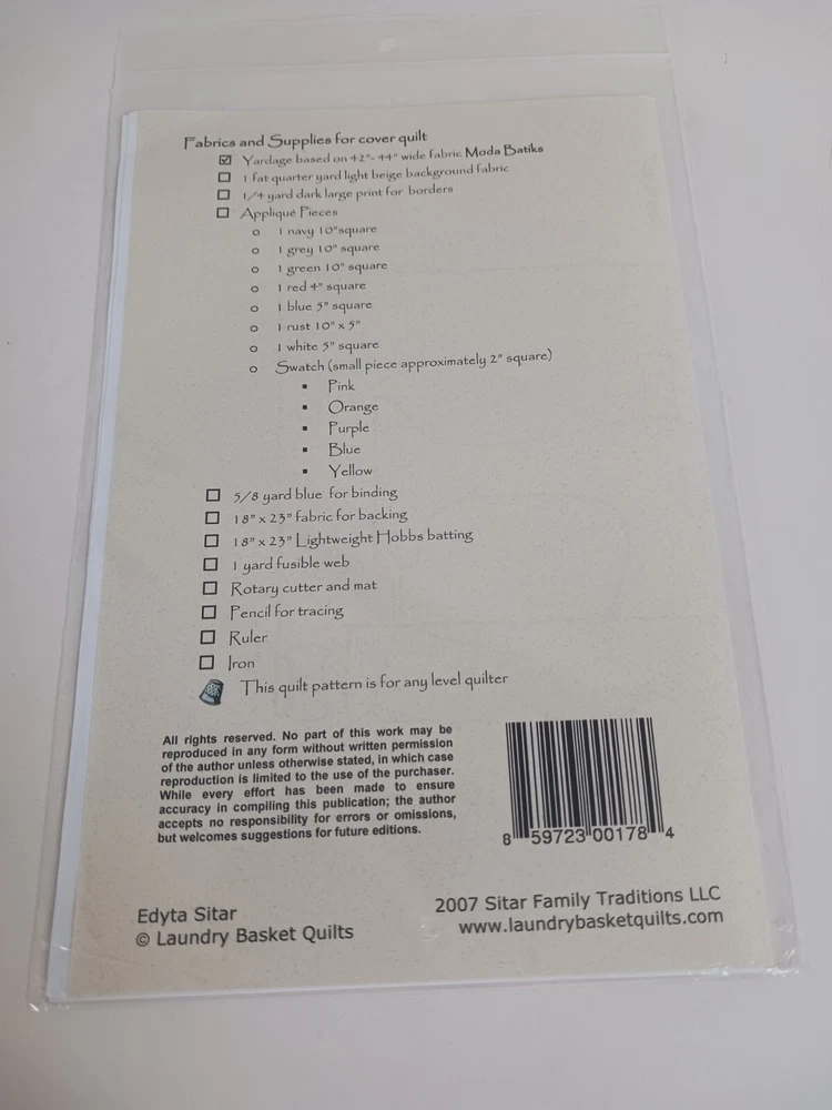 Country/Region of Manufacture: United States Type: Applique UPC: 859723001784 gtin13: 859723001784 Brand: Laundry Basket Quilts