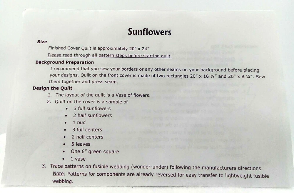 Laundry Basket Quilts Sunflowers UNCUT Quilt Sewing Pattern Raw Edge Applique