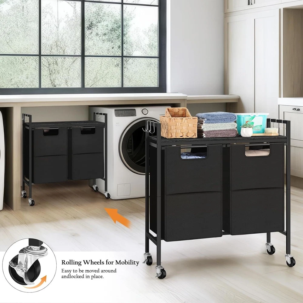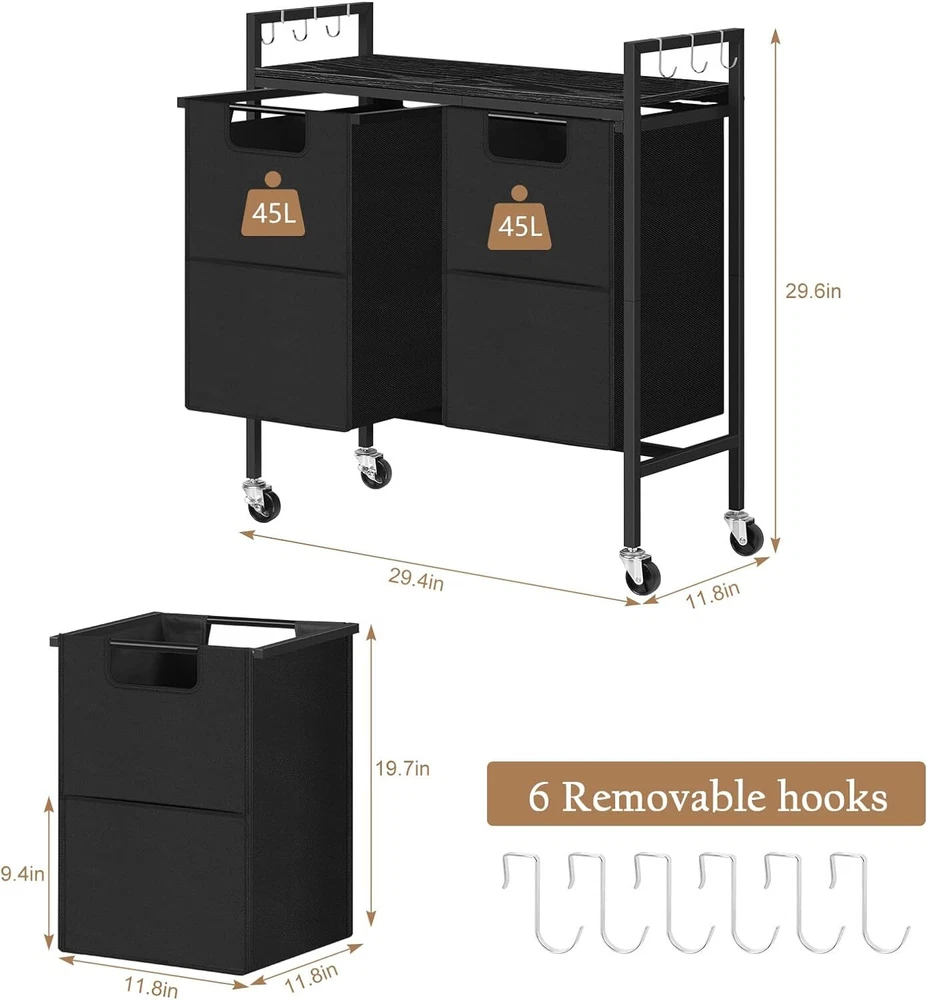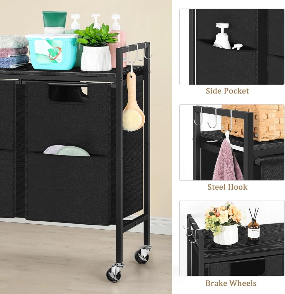 Laundry Hamper w/Wheels, Laundry Basket Organizer w/Removable Laundry Bags Hooks