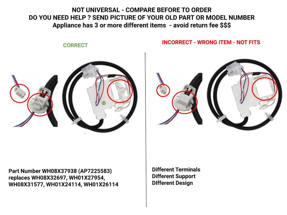 Store New Arrivals Add to Favorite View Feedback Contact Laundry Washer Lid Lock Switch Fits Old Number Description Item model number -JF Product Dimensions 6 x 4 x 4 inches; 7.68 ounces Material Plastic Country of Origin USA Item Weight 7.68 ounces Voltage 110 Volts, 120 Volts Model Name Lid Lock Switch Fits old number PERFECT FIT, No addittional terminal requiered The new product is made from high quality material and OEM specifications as a generic . Works with the most top name brands models and more GSPUSA 290D3070P002 CKD7098 Lid Lock Switch Fits old number 290D3070P002 for old and new models and serials 50 and 60 hertz for models and more GSPUSA GS102 with models of 110 volts or 120 Volts USA Canada models: and more 290D3070P002 is Compatible with several brands / NON OEM & perfect fit to old and new serials NEW PART NUMBER CKD45 fits old number 290D3070P002 Laundry Washer Lid Lock Switch Fits old number 290D3070P002, 290D3070P001 290D3070P003 Compatible with GE Hotpoint Kenmore Mabe and more ABOUT US We offer the best prices around on high quality products. Our E-store includes media such as books, movies, music and games while offering electronics, toys, sporting apparel, clothing, tools, general home, garden items and more. SHIPPING We are always working hard to ensure your package arrives as soon as possible. Please understand that some factors like weather, high postal traffic, and the performance of shipping companies are outside of our control. We offer free shipping to the lower 48 states and ship within 2 business days of payment, usually sooner. We do not accept P.O. Boxes. Please provide a physical address. For shipping outside of the continental USA, we only use eBay's Global Shipping Program.The item is shipped to KY and then sent to the rest of the world. International customers are responsible for all duties and taxes. Continue to check out in order to calculate costs for shipping the item to your country. Messages regarding eBay's Global Shipping Program MUST be directed at eBay EXCLUSIVELY. RETURNS We offer a 30-Day Return Policy on items which you are not completely satisfied with. You have the option for a full-refund or an exchange of the item. No returns are available on items shipped outside of the USA. PAYMENT We accept PayPal. CONTACT US This page content is yet to come Please ad us to your favorite seller and visit again later Thank You CUSTOMER SATISFACTION We try our very best to make sure every customer is completely satisfied. If there's a problem, message us! We're happy to help. WE ACCEPT Copyright © 2021 AutoDS. | All Rights Reserved