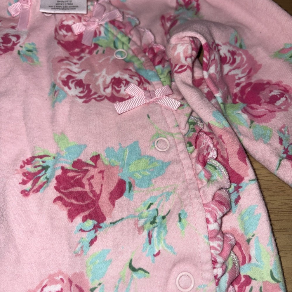 $ 11.62Vintage Floral Baby Girl Blue and Pink Romper-3-6Months Heart Accents