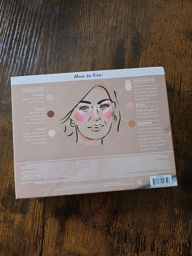 Flavor:Unflavoredgtin13:849154046546UPC:849154046546Set Includes:Blush, Eye ShadowColor:MulticolorMakeup Shade:AssortedNumber of Items in Set:7Department:WomenSkin Type:AllCoverage:FullCountry/Region of Manufacture:ItalySize:StandardBrand:Laura Geller