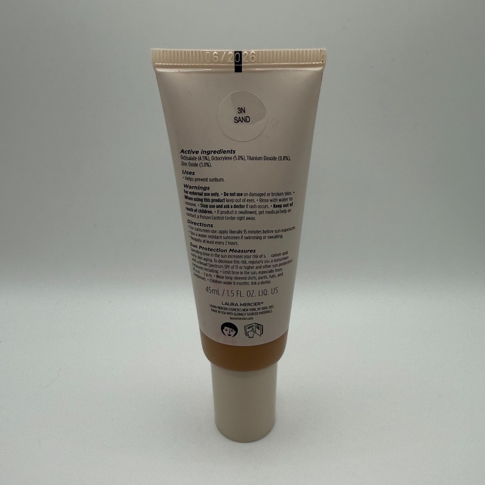 NEW Laura Mercier Tinted Moisturizer SPF 30 3N SAND Natural Dewy 1.5 oz Laura Mercier Tinted Moisturizer Natural Dewy Broad Spectrum SPF 30 Shade : 3N Sand (For medium skin with neutral undertones) Size : Large Size (1.5 fl oz / 45 ml) Condition : New, Unused, Unboxed Expiration Date: 06/2026 LM1AB173 Achieve a healthy, "no-makeup" look with this multi-tasking tinted moisturizer from Laura Mercier. It provides sheer, buildable coverage to even out skin tone while delivering a luminous, dewy finish for a natural glow. The lightweight formula is infused with hydrating ingredients and provides essential SPF 30 sun protection, making it the perfect all-in-one product for daily use. Key Features: Natural Dewy Finish: Gives skin a radiant, healthy-looking glow. Sheer, Buildable Coverage: Evens out skin tone while letting your natural skin show through. Broad Spectrum SPF 30: Helps protect skin from the sun's harmful UVA/UVB rays. All-Day Hydration: Keeps skin feeling moisturized and comfortable. Authentic Product: A genuine Laura Mercier product with a clear expiration date of June 202 Packaging Exterior may include blemishes or scuffs