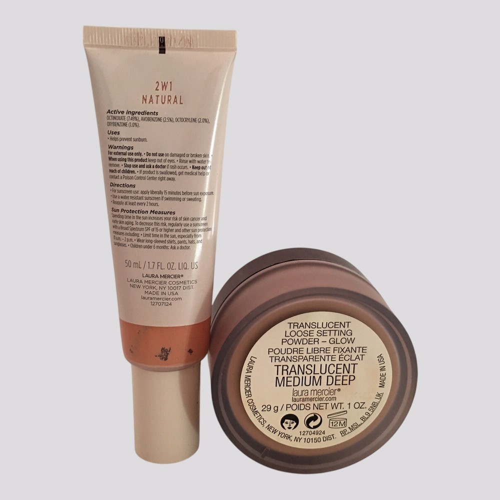 You will receive: 1 (one) Laura Mercier Translucent Loose Setting Powder, A Lightweight, Full-Sized, Long-wearing Loose Powder with a Matte Finish, Shade: Translucent Medium Deep - 1 oz / 29 g (sealed without retail box) 1 (one) Laura Mercier Tinted Moisturizer Natural Skin Perfector 2W1 NATURAL - EXP 04/21 - 1.7 fl oz / 50 ml (unsealed, unused, untested, full and with original box) * Expiration date is 04/2021 and is past the manufacturer suggested shelf life so please consider when purchasing. * Slight package distress. See photos. Terms and Conditions: Conditions are “New Old Stock” unused, untested and full. Makeup items are 100 percent authentic and Laura Mercier’s cosmetic scientist’s exclusive discontinued shades and formulas. Expiration date on the tinted moisturizer is 04/2021 and is past the manufacturer suggested shelf life so please consider when purchasing. Sold as is, as found and as pictured. All photos are an ACCURATE REPRESENTATION of the makeup items you would be purchasing. Please zoom into the pictures closely and judge the condition, size and content for yourself as our photos are a large portion of our description. Any concerns about condition please address these concerns before purchasing. We aim to provide accurate and honest descriptions. Please read descriptions carefully. We try to describe everything in as much detail as possible, but if you still have questions, please don't hesitate to ask. We will be more than happy to answer your questions and provide you with additional pictures if necessary. Most orders ship within 3-5 business days (Business days Mon-Fri) with USPS GROUND ADVANTAGE. Due to export limitations and restrictions, items listed in the Health & Beauty category CANNOT be shipped with eBay International Shipping. * Please check items included in eBay's hazardous, restricted or regulated materials policy. To ensure a positive shopping experience for all our customers, returns ARE accepted. Item(s) can be returned in its original condition for a full refund within 30 days of receipt; however, if an item is damaged or defaced by the customer, or if a new item is returned opened, used or without the tag(s) attached, the refund amount will be reduced by up to 50% as allowable by eBay. By purchasing this item, you are agreeing to this store policy. All returns must go through eBay Returns Center. For any reason that you no longer want to keep your order, please open a return request through eBay to return an item. We will provide a return label free of charge. We abide by eBay’s rules and regulations for returns, if they are met, you will refunded. If you have any further questions about the return policy, please contact an eBay service agent. If there is an issue with your purchase, PLEASE do not leave negative feedback before you have contacted us to resolve any issues. If you have any questions or concerns, contact us directly by selecting the ‘CONTACT SELLER’ option. We will work with you quickly to resolve any questions or problems. If any of our national network of stores identify unreasonable, problematic transactions, we reserve the right to block any buyer from future purchases at our discretion. Buy with confidence and rest assured that you are dealing with an experienced store whose #1 priority is customer satisfaction. We list new items continuously, so add us to your favorites and check back often as you never know what you'll find here. Look around in our store as we have a huge selection of fragrances, skincare, makeup and other beauty products. THANK YOU for shopping with us! We want you to be happy with your purchase! PLEASE don't forget to leave positive feedback and give 5 stars in Seller's Rating. The information provided here is strictly to be used for informational purposes only. We do not represent or warrant the product details, ingredients and nutritional value, and any other product information to be accurate or complete. Manufacturers improve or change their product formulas, update labels, and change their packaging. It is recommended that you do not solely rely on the information described in this listing. For any specific product info or concerns it is recommended that you contact the manufacturer directly. If there are healthcare concerns or questions, please contact your licensed healthcare professional for advice. Attention VeRO members: We are not affiliated or endorsed by the companies mentioned in this listing. All trademarks and copyrights are acknowledged, they are only used for informative description of the items offered for sale. All items are authentic as evidenced in photos, legally acquired and owned, and hence covered under First Sale Doctrine. Unlawful VeRO removal of this listing WILL constitute perjury and result in legal action.