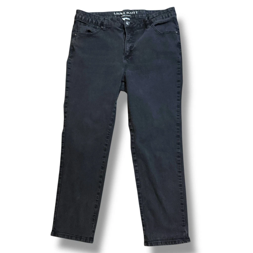 Laura Scott Jeans Womens Faded Black Classic Straight Fit Stretch Denim Size 14 Elevate your wardrobe with Laura Scott's classic straight fit jeans. Made from stretch denim, these faded black jeans offer both comfort and style for all-day wear. Complete your look with this trendy, versatile denim. The jeans are in good used condition and ready to wear. They are a faded black that can also appear gray in certain light. Size - 14 B10
