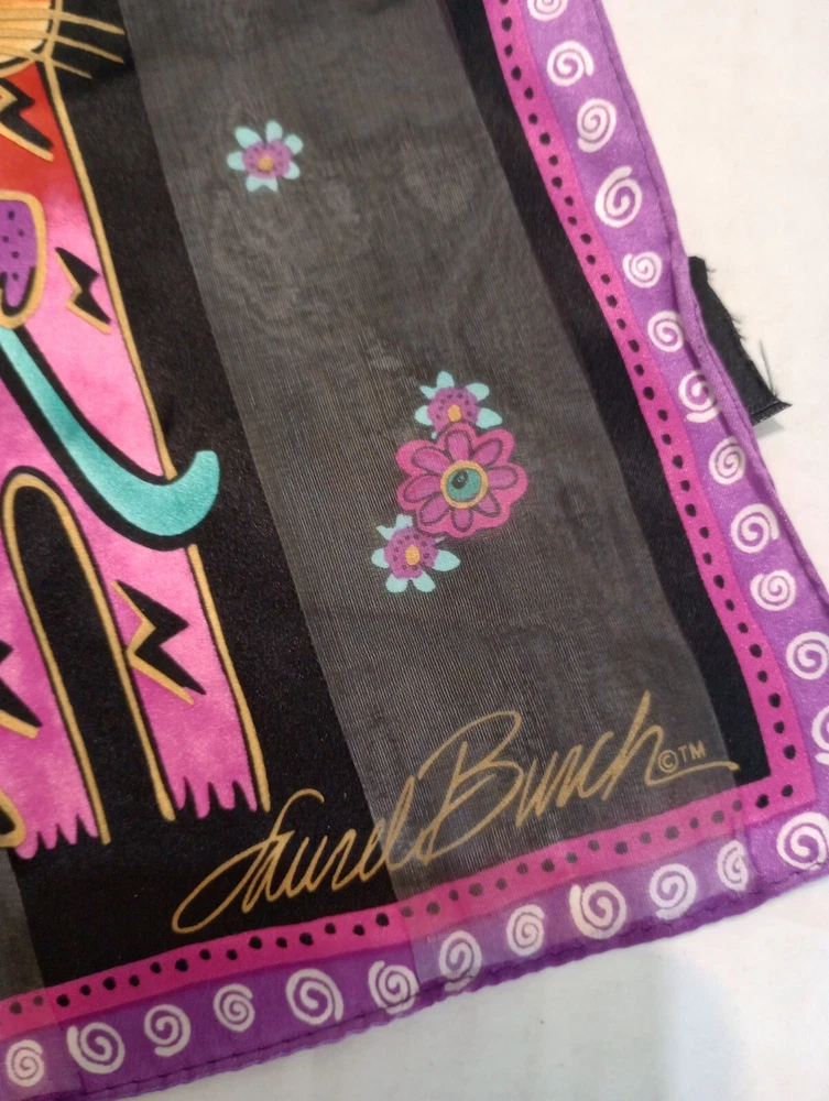 Laurel Burch Cats with Umbrella Silk Scarf 27" X 11"
