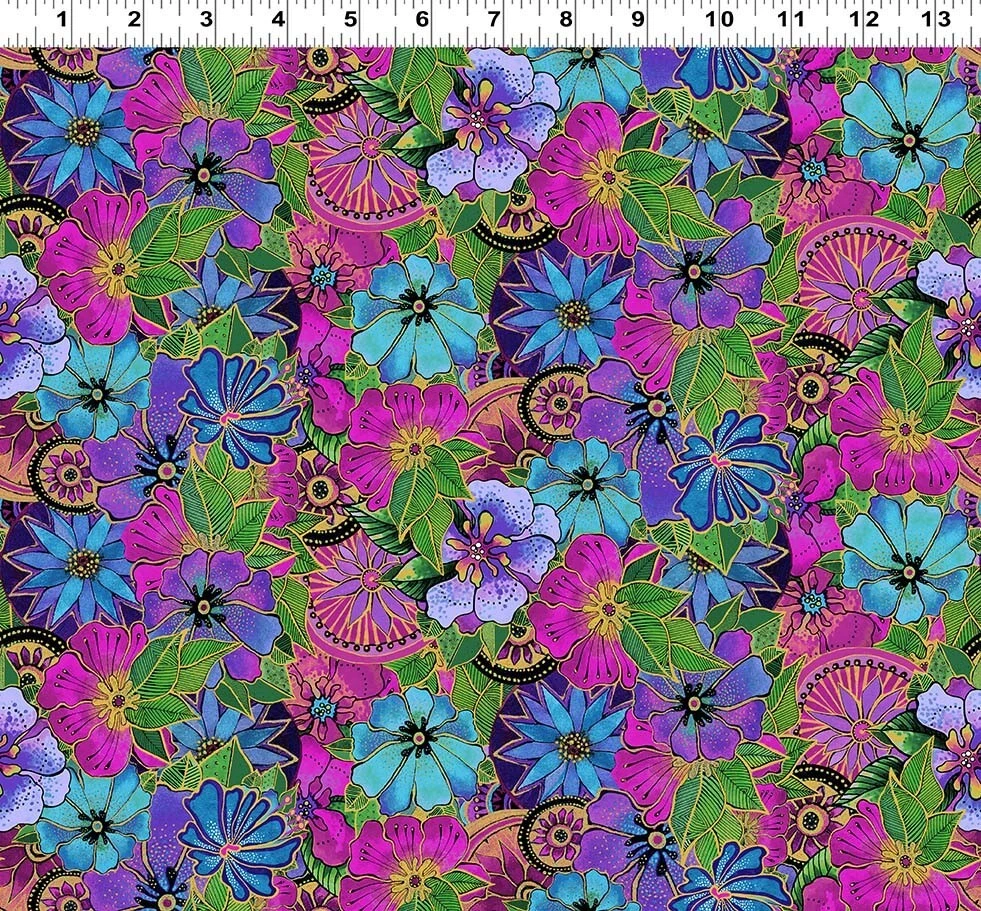Title : Laurel Burch Earth Song Packed Flowers Dark Orchid Fabric ~ Sold by the 1/4 yard increment Item description : You are buying one increment (1 FQ) of Packed Flowers Dark Orchid from the Laurel Burch Earth Song collection by Clothworks . There are several flowers of many colors and shapes packed tightly allover is fabric. No bac kground can be seen. There are gold metallic outlining this design’s components . Larger flowers are about 2-1/4". The first and second photos are ones that Clothworks provided ; a ruler is included on the second photo to show the size . The quilts shown use fabrics from this collection and the pictures are from Clothworks; they are not included in this listing. They are available by request while supplies last. The last photo is a composite of the whole fabric collection; they also are not included in this listing. The pictures really don't do the fabric justice. It is much more beautiful than a picture can show. We are sure you can agree. This fabric is priced by the single 1/4 yard increment, so you can choose the amount that is right for you from the quantity available. Our fabric is : Priced by the 1/4 yard (FQ if only one is purchased) ~ not by the yard 100% cotton Quilt Shop quality fabric New ~ Still on the bolt from the manufacturer It is not washed, soaked, or ironed Sold in continuous yardage, which means if you buy a quantity more than one (1) it will be shipped in one continuous piece Need more than one FQ? Buy 2 = 1/2 yard (18" L x 43"-44" W) Buy 3 = 3/4 yard (27" L x 43"-44" W) Buy 4 = 1 full yard (36" L x 43"-44" W) Buy 5 = 1-1/4 yard (45" L x 43"-44" W) And so on... What is a FQ? It is 1/4 yard of fabric, but it is cut off the bolt differently than the standard 1/4 yard of fabric. It is cut off the bolt at the 1/2 yard length; then it is cut in half by the width the fabric. This means that the piece of fabric measures 18 x 21-22 inches. It is "fat" instead of "skinny" like the regular 1/4 yard, which measures 9 x 43-44 inches. To change your purchase to a regular skinny 1/4 yard: please add a comment to your payment or send us a message thru eBay's "My Messages" system. Whether your one increment is a FQ or a regular 1/4 yard it doesn't effect the price; they are both the same. Search our store : Chec k out our store for other beautiful fabrics; you never know what you may find. We have lots of other fabrics in stock. Disclaimer : Due to the limitations of desktop scanners, digital scanners, and the inconsistencies of screen displays, the colors and other characteristics you see on screen MAY NOT be a totally accurate reproduction of the actual fabric. Images are intended to be used as a guide only and should not be regarded as absolute replications of the fabric. Color Matching is not possible without the actual fabric. Colors stated in the description are subjective and are used to help you to visualize the fabric. If you need to color match a fabric or verify other characteristic of a fabric, please send us a message. When we receive your message, we will let you know how to proceed with purchasing a sample. Shipping information : We are always happy to combine your purchases to save you money on shipping costs, but you need to make ONLY ONE payment in order to receive the most savings. Save on shipping costs. Be sure to buy with the "add to cart" button if you are buying more than one item from us. Buying multiple items and paying for them individually causes you to not receive our combined shipping rate. We will refund excess shipping if a significant overcharge does happen due to combined orders, or if errors occur in eBay's automated shipping total. Payment information: Simply use the "add to cart" button to select all the fabrics you want to purchase instead of "buy it now" button. Add all of your selections to your cart before you go to checkout. You will save on shipping costs with our combined shipping rates. Payment is then appreciated within 24hours, but it is expected within a maximum of 4 days. International Buyers: We use the eBay International Shipping program to ship all our international packages. We simply ship to an eBay shipping hub in the USA, and eBay does the rest, which includes the customs paperwork. Returns are also handled by eBay. Be sure to add us to your favorites ! Check out our store for other beautiful fabrics ! You never know what you will find Thank you for shopping at Sew Fine Treasures