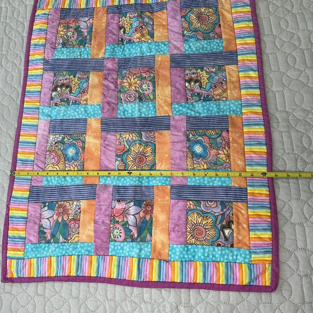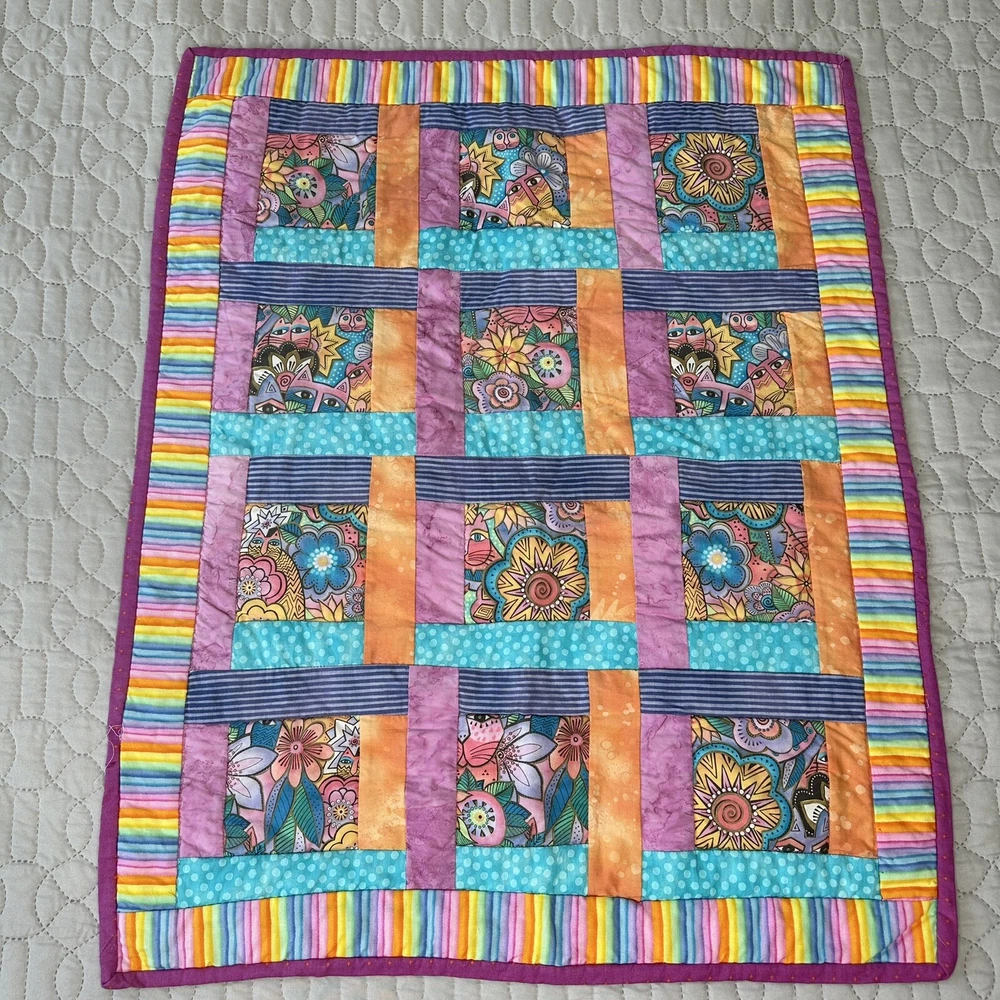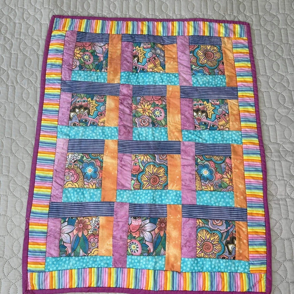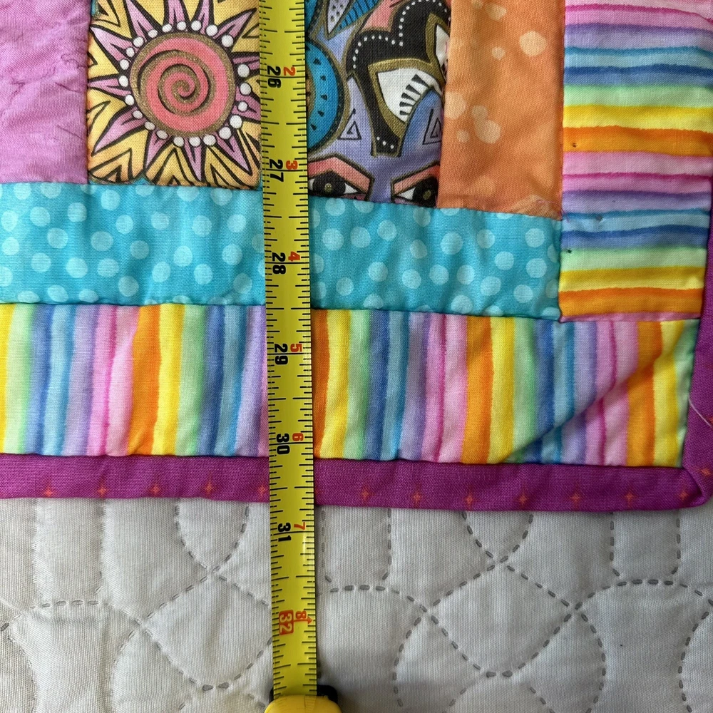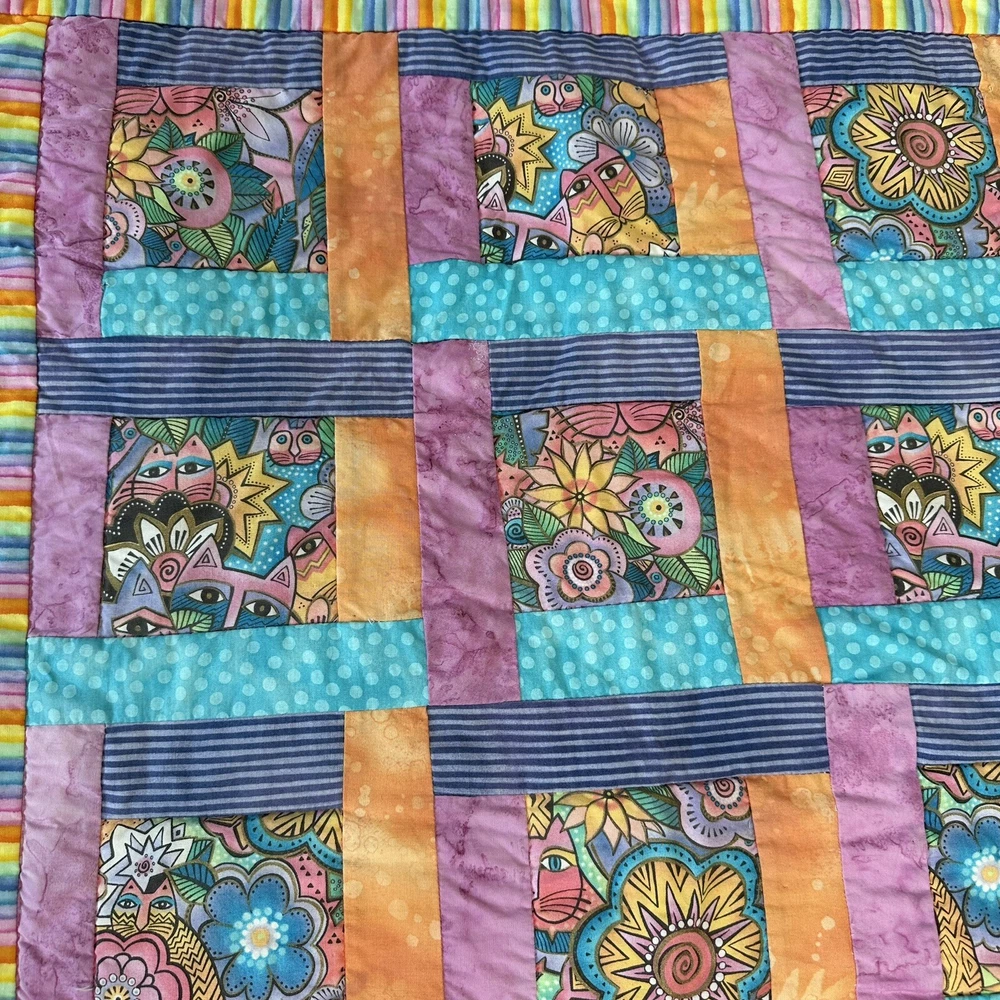 Laurel Burch Felines & Canines Fabric quilt. Quilt is complete. Small defect in the upper left corner can be repaired. In good preowned condition. From a smoke free home.