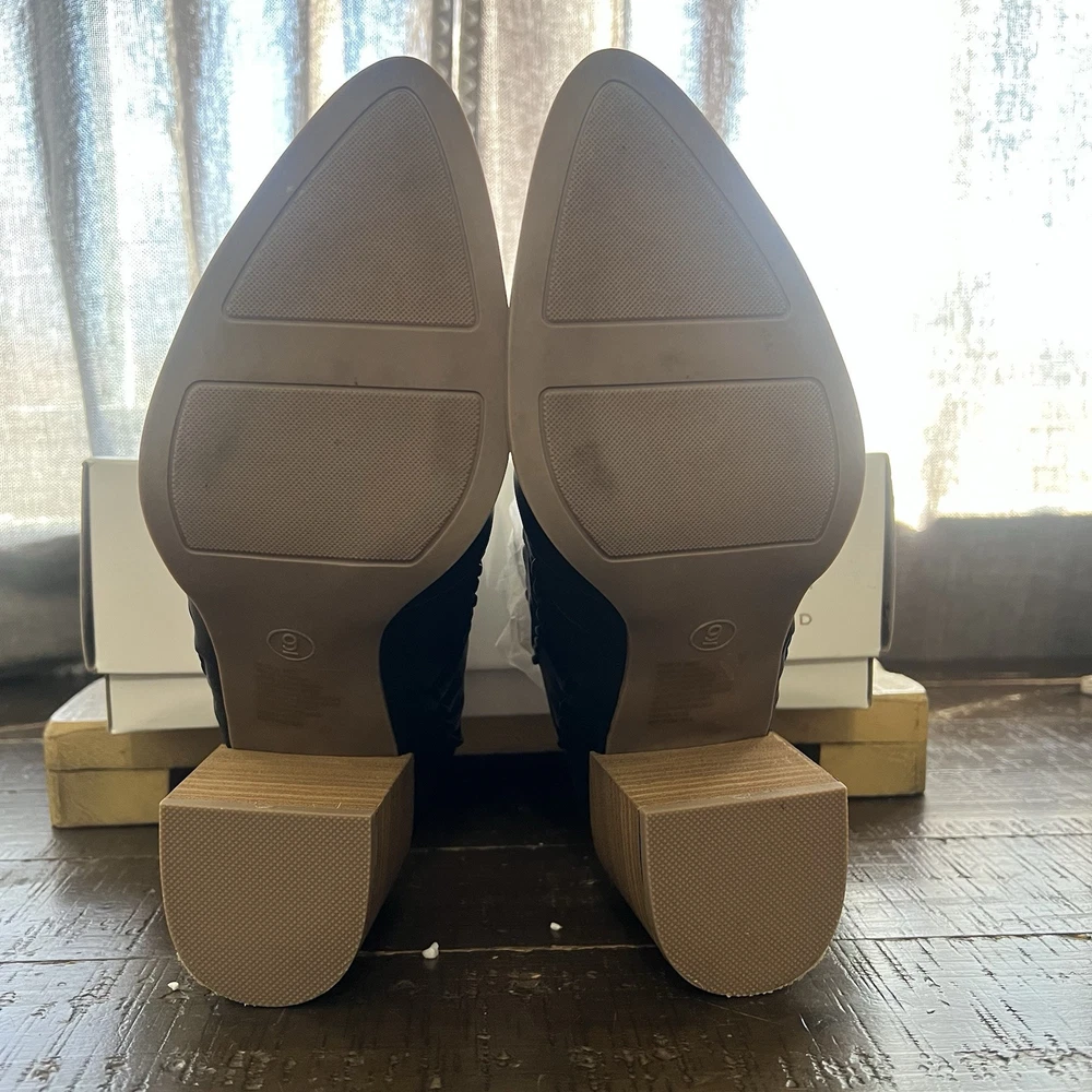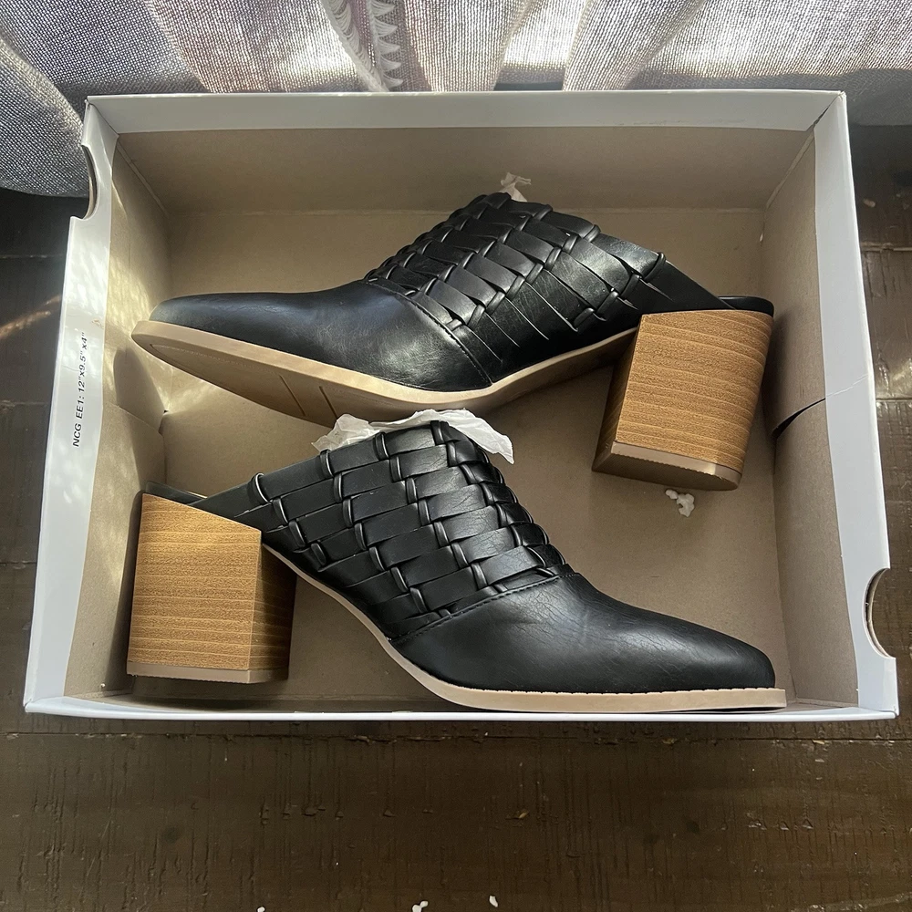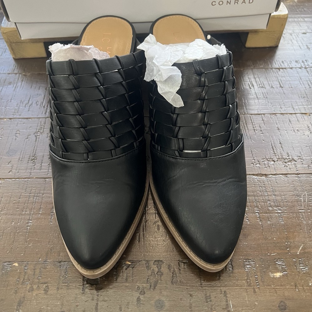 Elevate your style with these chic LC Lauren Conrad River Birch mules. The sleek black color and woven pattern make them perfect for any occasion, whether it's a formal event or a casual day out. The slip-on style and pointed toe create a sleek and sophisticated silhouette, while the mid-height block heel provides comfortable wear throughout the day. These mules feature a cushioned insole and padded lining for added comfort, and the breathable TPR outsole ensures a sturdy grip on any surface.