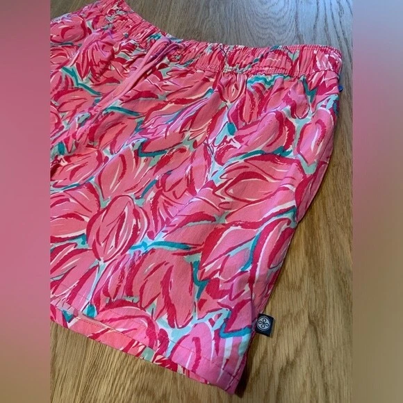 Lauren James Pink Floral Tulip Swim Shorts Pocket Water Nylon large
