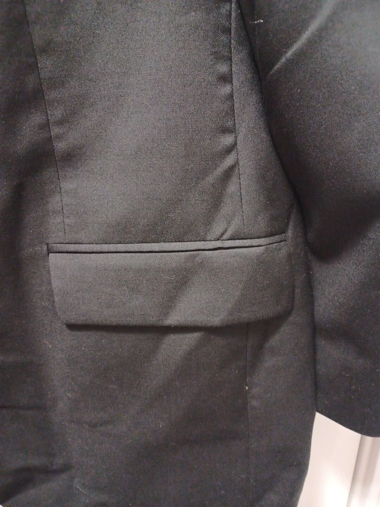 Elevate your formal attire with this Lauren Ralph Lauren suit jacket. Crafted from high-quality wool, this black suit jacket features a classic notch lapel style and a single-breasted cut with a two-button front button style. The jacket is single-vented and has a regular length that fits a chest size of 44. Perfect for any occasion, whether it's a business meeting, party, or cocktail event, this suit jacket is a must-have in your wardrobe. The jacket is dry clean only. The jacket is a designer classic piece that is perfect for any season, including winter, summer, fall, and spring. Great condition.