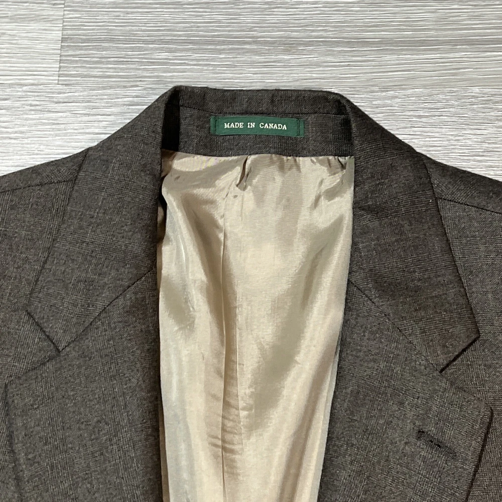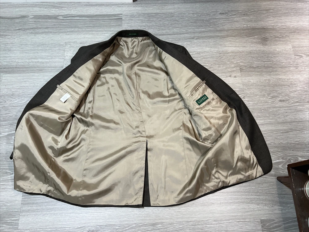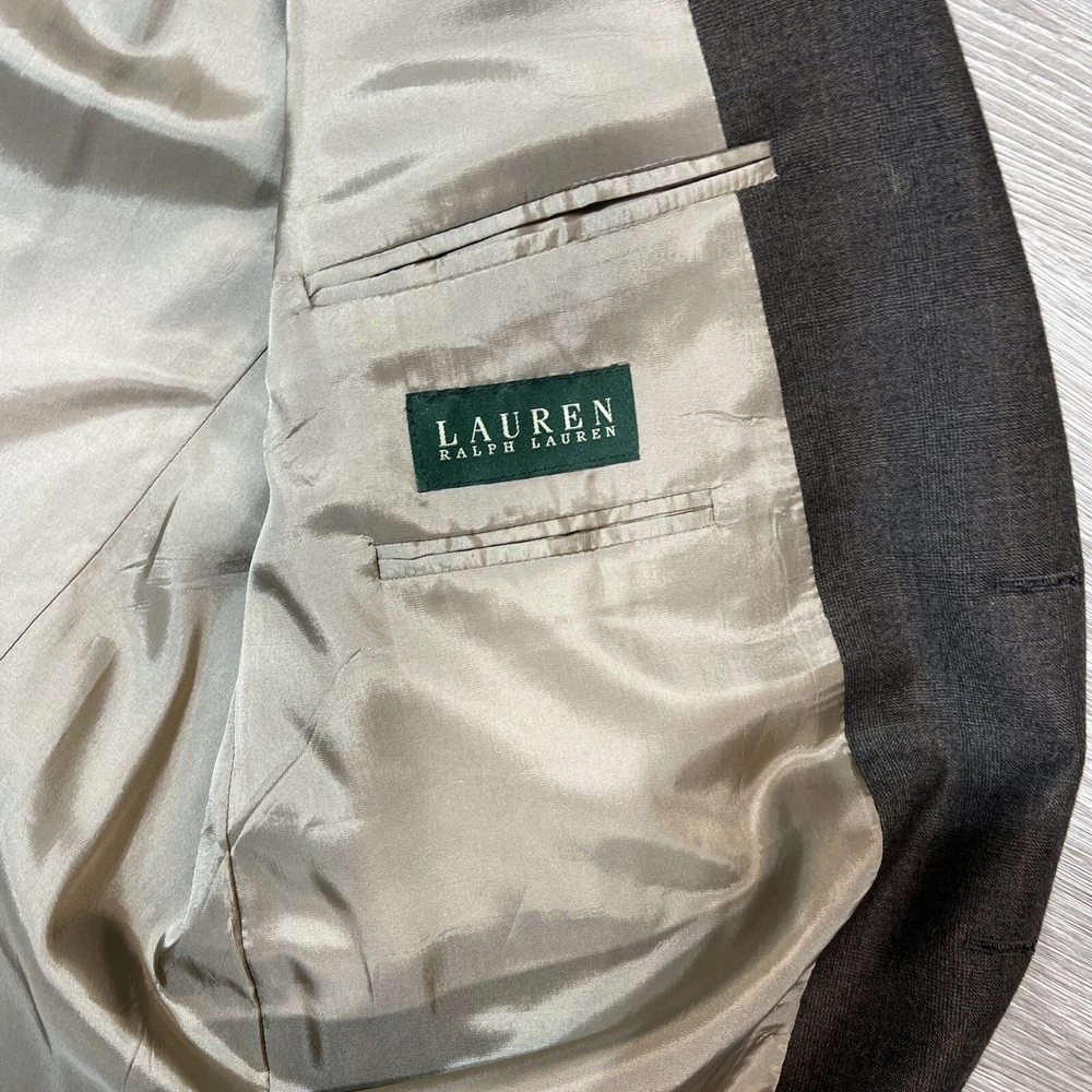 Country/Region of Manufacture: Canada Brand: Lauren Ralph Lauren Season: Fall, Spring, Winter Lining Material: Wool Jacket Cut: Single-Breasted Fit: Regular Features: Inner Pockets Occasion: Business, Casual, Formal, Party/Cocktail, Travel Color: Brown Jacket Vent Style: Single-Vented Theme: Designer Waist Size: 44 in Handmade: No Fabric Type: Wool Vintage: No Size Type: Regular Pattern: Windowpane Material: Cashmere, Wool Chest Size: 48 Size: 48 UPC: Does not apply Style: One Blazer gtin13: Does not apply Garment Care: Dry Clean Only Jacket Lapel Style: Notch Jacket Front Button Style: Two-Button Number of Pieces: 1 Piece Jacket/Coat Length: Long Type: Blazer Jacket Sleeve Button Style: Four-Button Personalize: No Department: Men