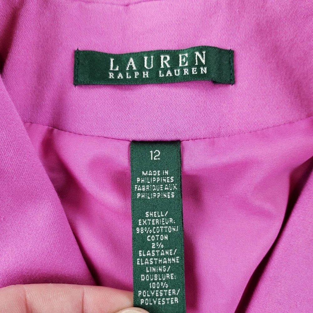 Up for sale is a - Lauren Ralph Lauren Jacket Size: 12 Measurements: See photos above for all measurements Check measurements for desired fit All measurements are approximate Very good used condition All Colors are bright and vibrant. All used clothing has been cleaned per Ebay policy. I will ship the item USPS Ground Advantage 2-5 Business Day Mail with a tracking number for confirmation I ship items every day so EXPECT a QUICK delivery! I ship every day Monday-Friday Please feel free to ask any questions you may have