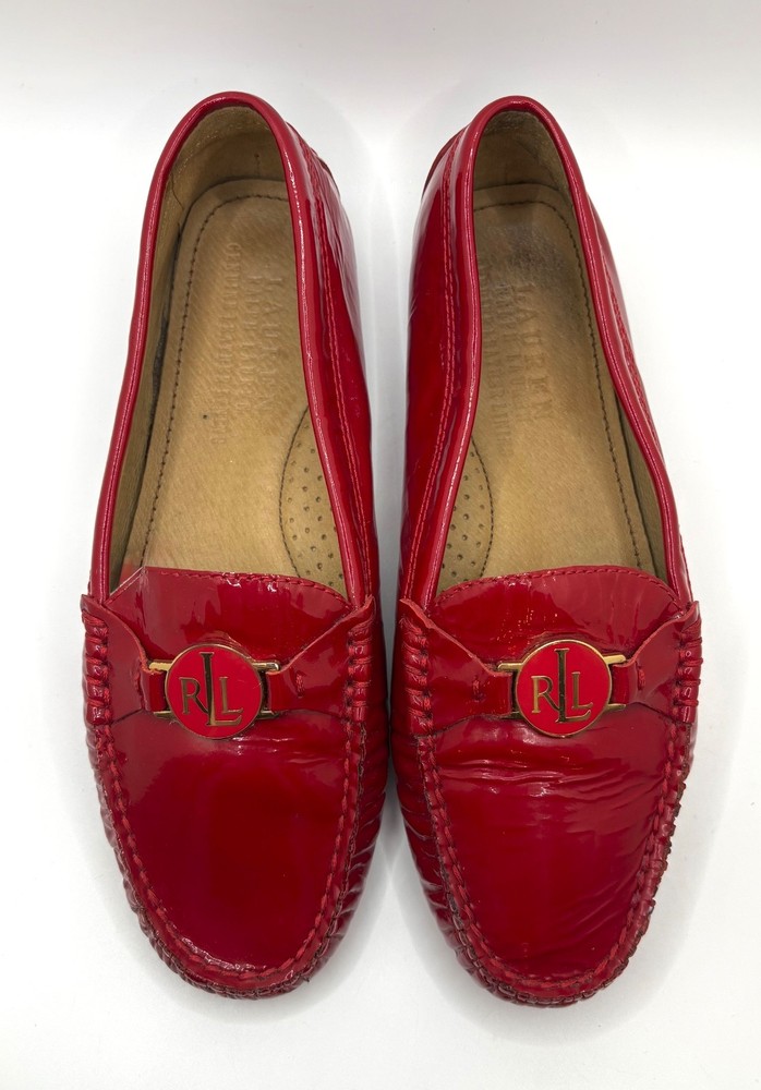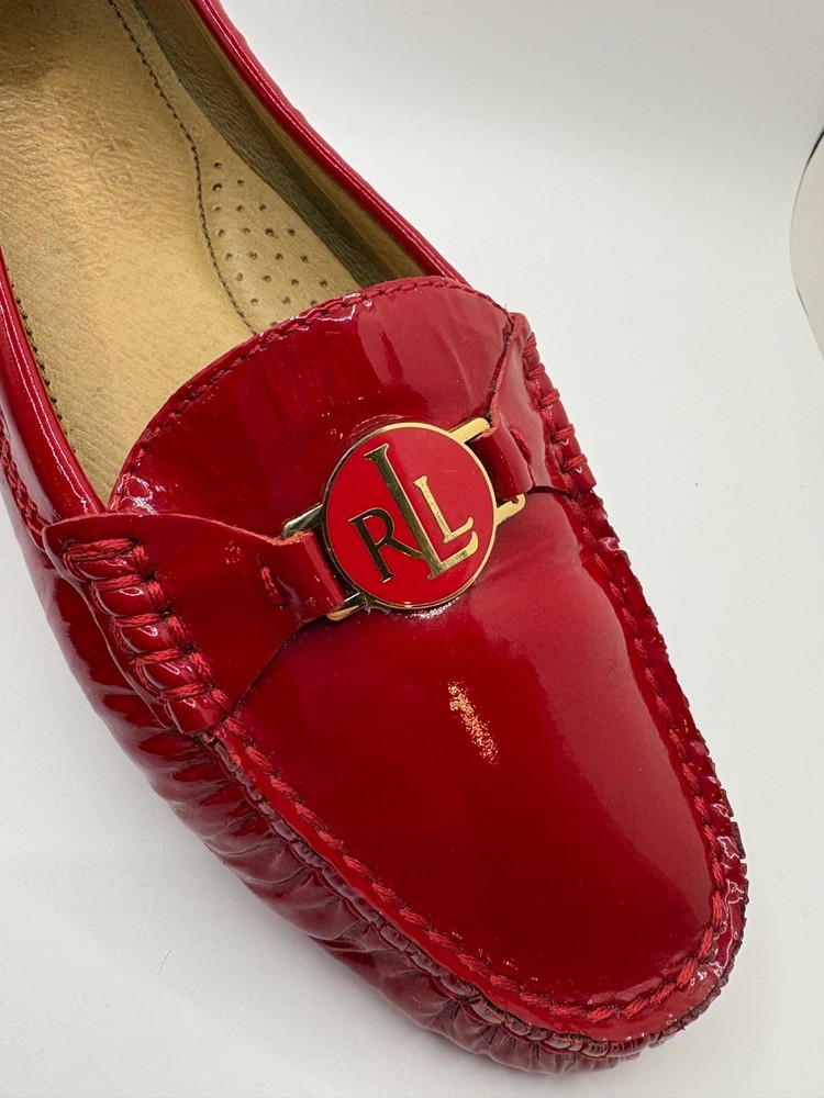 Lauren Ralph Lauren - Carley Woman’s Loafers Size: 6B Color: Red Material: Leather Shoes are in good pre-owned condition with some wear to the leather (the left shoe has more crinkling then the right one.)