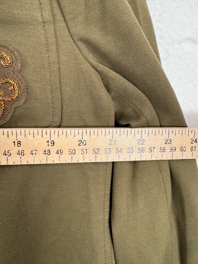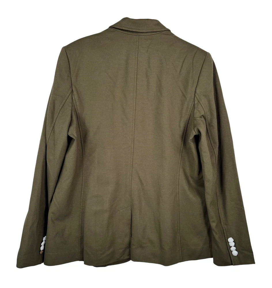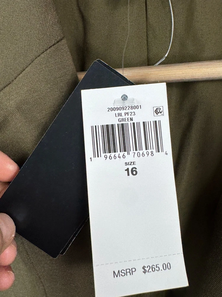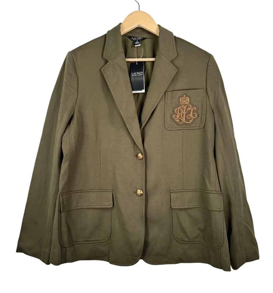 New with Tag Smooth ponte and a tailored silhouette define the smart sophistication of this straight-cut blazer, which is characterized by iconic Lauren details, including signature crest-embossed buttons and a regal “LRL” logo patch at the chest. Straight fit. Intended to hit at the hip. US size Petite 8 has a 25.75" body length and a 31.75" sleeve length. Body length and sleeve length are taken from the center back of the neck. Sleeve length changes 0.25" between sizes. Notch lapels. Two-button silhouette. Signature crest-embossed buttons. Long sleeves with four-button cuffs. Shoulder pads. Two front waist flapped patch pockets. Left chest patch pocket. Metallic script "LRL" logo patch with a crown embroidered at the pocket Flat lay: pit to pit 21" Length 29" Material: Shell: viscose, nylon, elastane. Lining: polyester, elastane. Academia, preppy, embroidered, crest logo, knit, stretchy, designer, elegant, intellectual, tailored, work wear, office, classic, minimalist, structured, muted, refined, 90s, Y2K, cocktail PLEASE check all flat lay measurements and listings carefully BEFORE PURCHASE!I put in a lot of work into hand measuring and researching each items as best as I can! Thank you so much for your consideration! If you are not too familiar with flat lay measurements, I recommend taking a measurement of your own clothes that you feel comfortable and compare with the measurement I provide. We all don't like returns and let's work together to minimize! Please note that RETURNS ARE NOT ACCEPTED FOR NEW WITH TAG OR NEW WITHOUT TAG ITEMS!