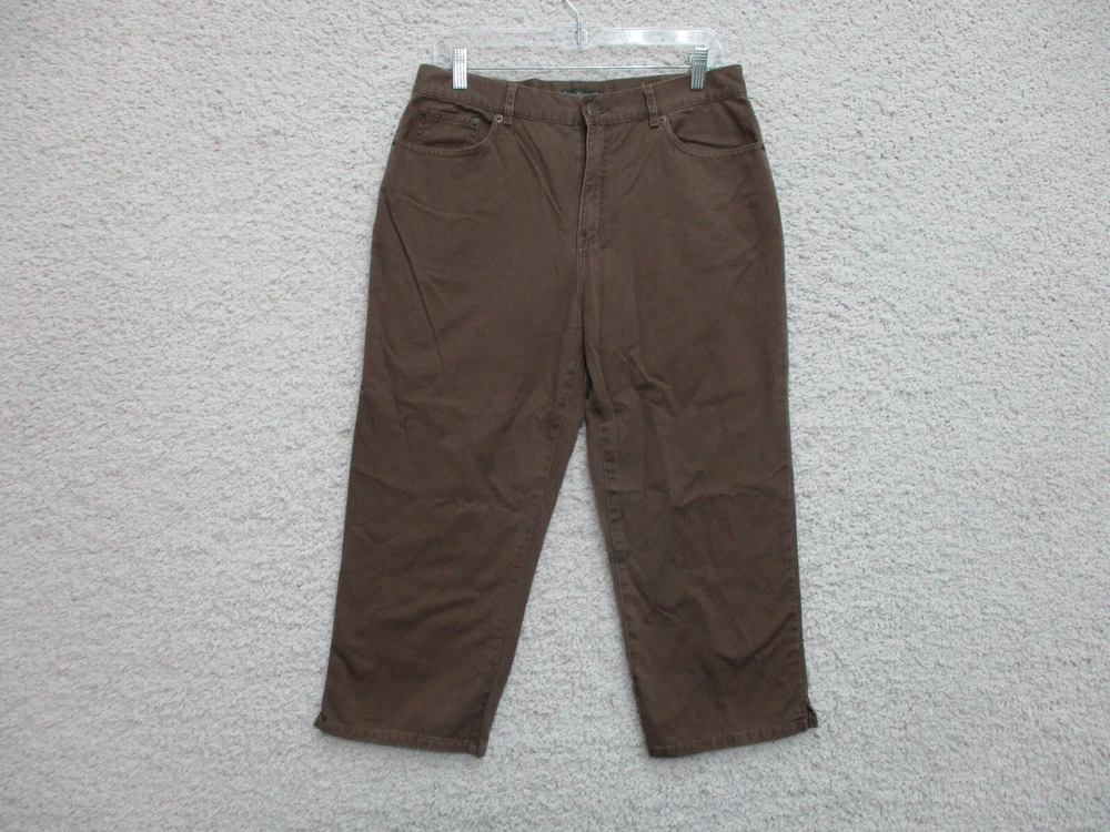 Pocket Type: 5-Pocket Design Type: Jeans Rise: Mid (8.5-10.5 in) Style: Capri Garment Care: Machine Washable Brand: Lauren Ralph Lauren Material: Cotton, Cotton Blend Closure: Zip Season: Fall, Spring, Summer, Winter Inseam: 22 in Accents: Button, Logo Fit: Regular Department: Women Seller Notes: “Very Good Used Condition. Please, See Pictures for Full Condition and Measurements.” UPC: Does Not Apply Features: Comfort, Easy Care, Pockets, Stretch Fabric Type: Canvas Size Type: Regular Theme: American, Logo, Modern gtin13: Does Not Apply Waist Size: 30 in Color: Brown Size: 10 Suspender Buttons/Belt Loops: Belt Loops Country/Region of Manufacture: China Pattern: Solid