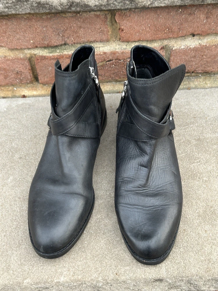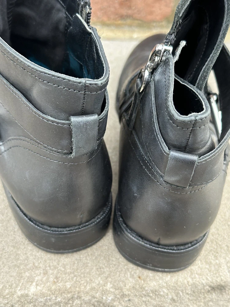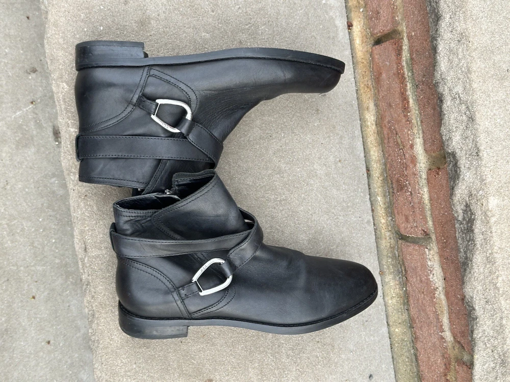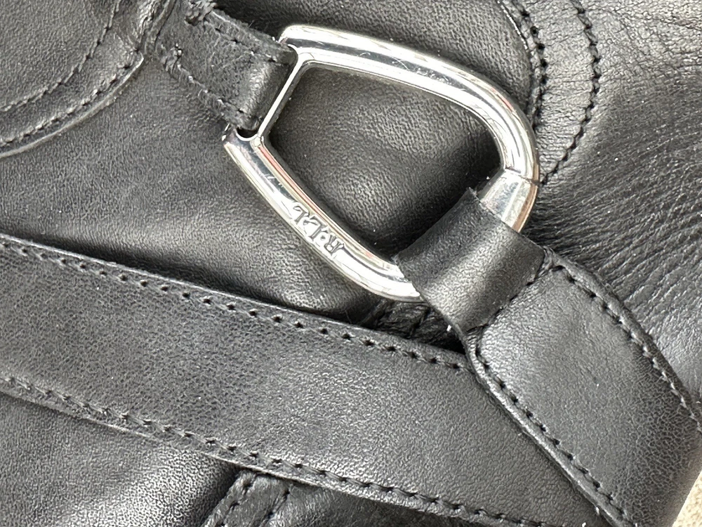 Style:BootieAccents:Gold tone buckle trimHeel Style:BlockUPC:Does not applyInsole Material:UnknownUpper Material:LeatherPlatform Height:1/4 "gtin13:Does not applyTheme:EquestrianToe Shape:Round ToeBrand:Lauren Ralph LaurenOutsole Material:RubberOccasion:CasualLining Material:UnknownCustomized:NoColor:BlackPersonalize:NoDepartment:WomenClosure:ZipShoe Shaft Style:AnkleVintage:NoUS Shoe Size:7Calf Width:Not that tall.Heel Height:Low (1-1.9 in)Model:Lauren Ralph Lauren MargoPattern:SolidFeatures:Strapping and Buckle look details.Country/Region of Manufacture:ChinaType:BootShoe Width:B